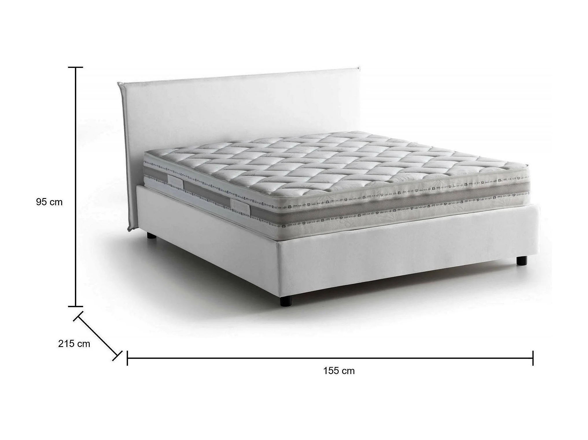 Doppelbett Dallegr, Containerbett mit Stoffbespannung, 100% Made in Italy, Frontöffnung, mit Matratze Cm 140x200 enthalten, Weiß