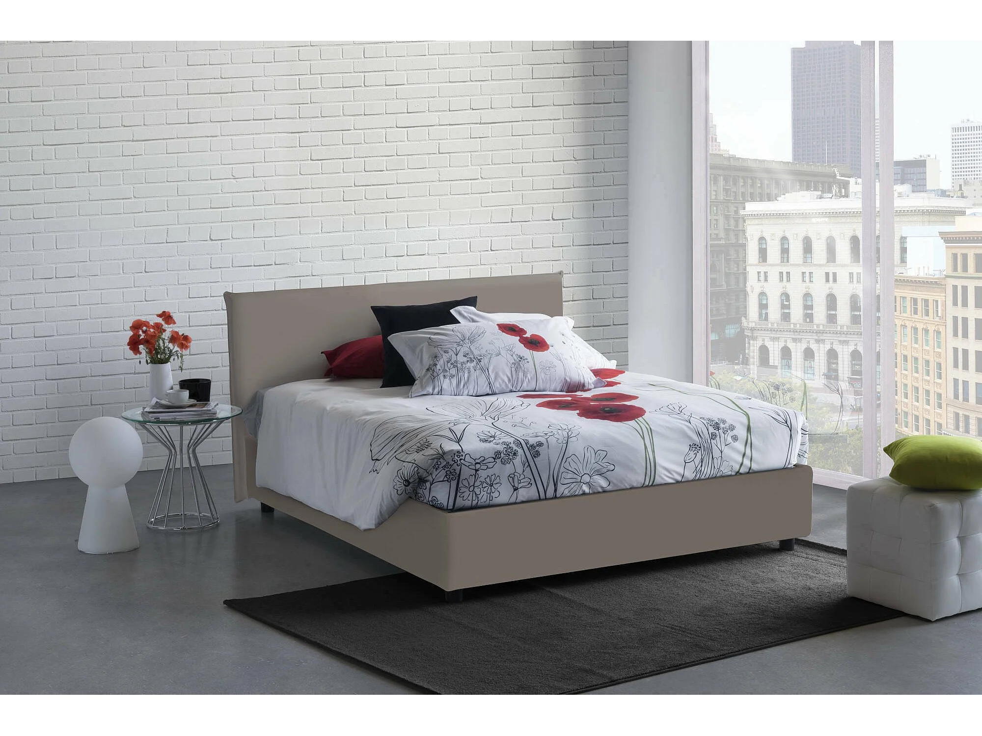 Doppelbett Dalunn, Containerbett mit Kunstlederbezug, 100% Made in Italy, Frontöffnung, inklusive Matratze Cm 160x190, Turteltaube