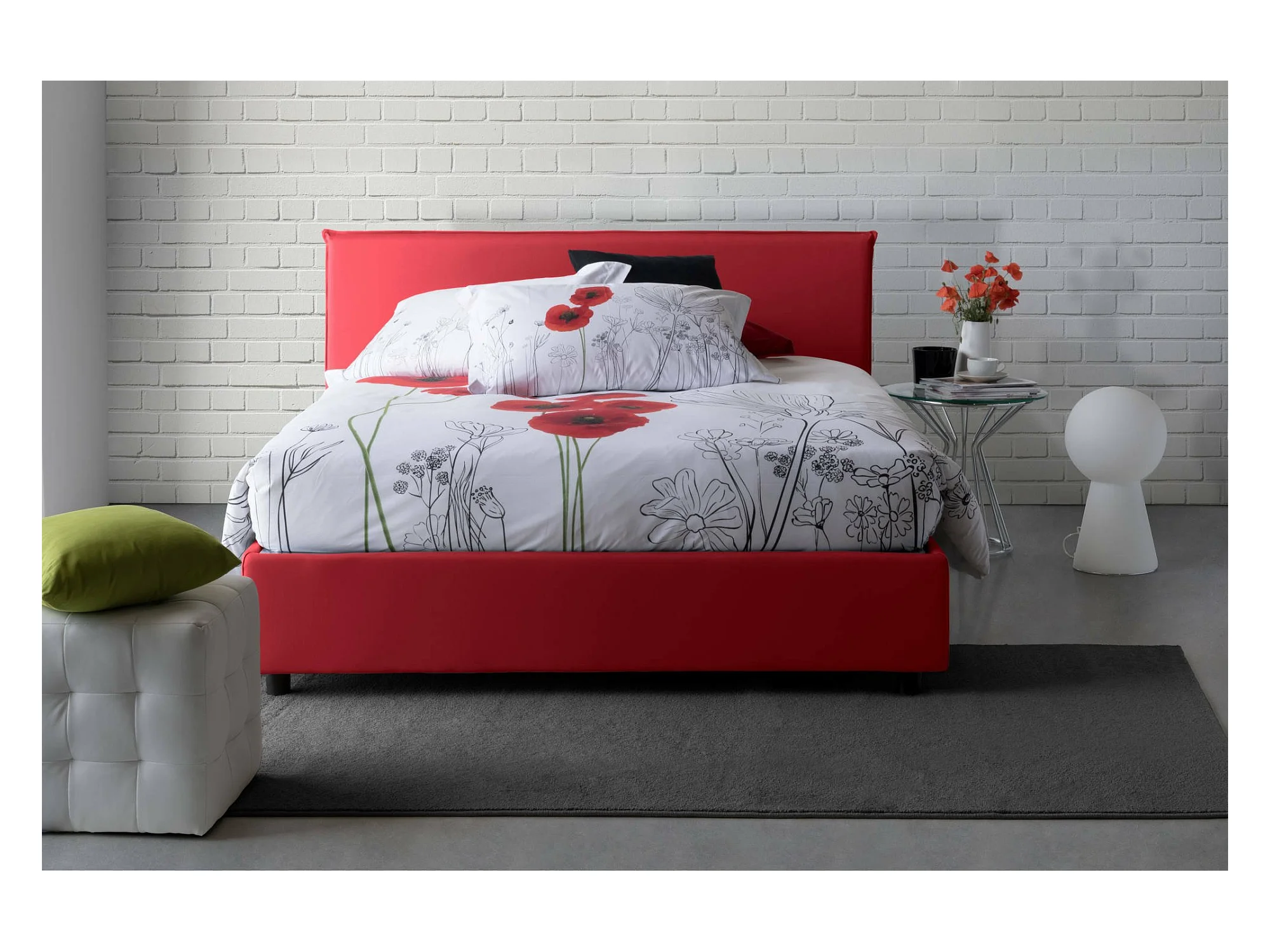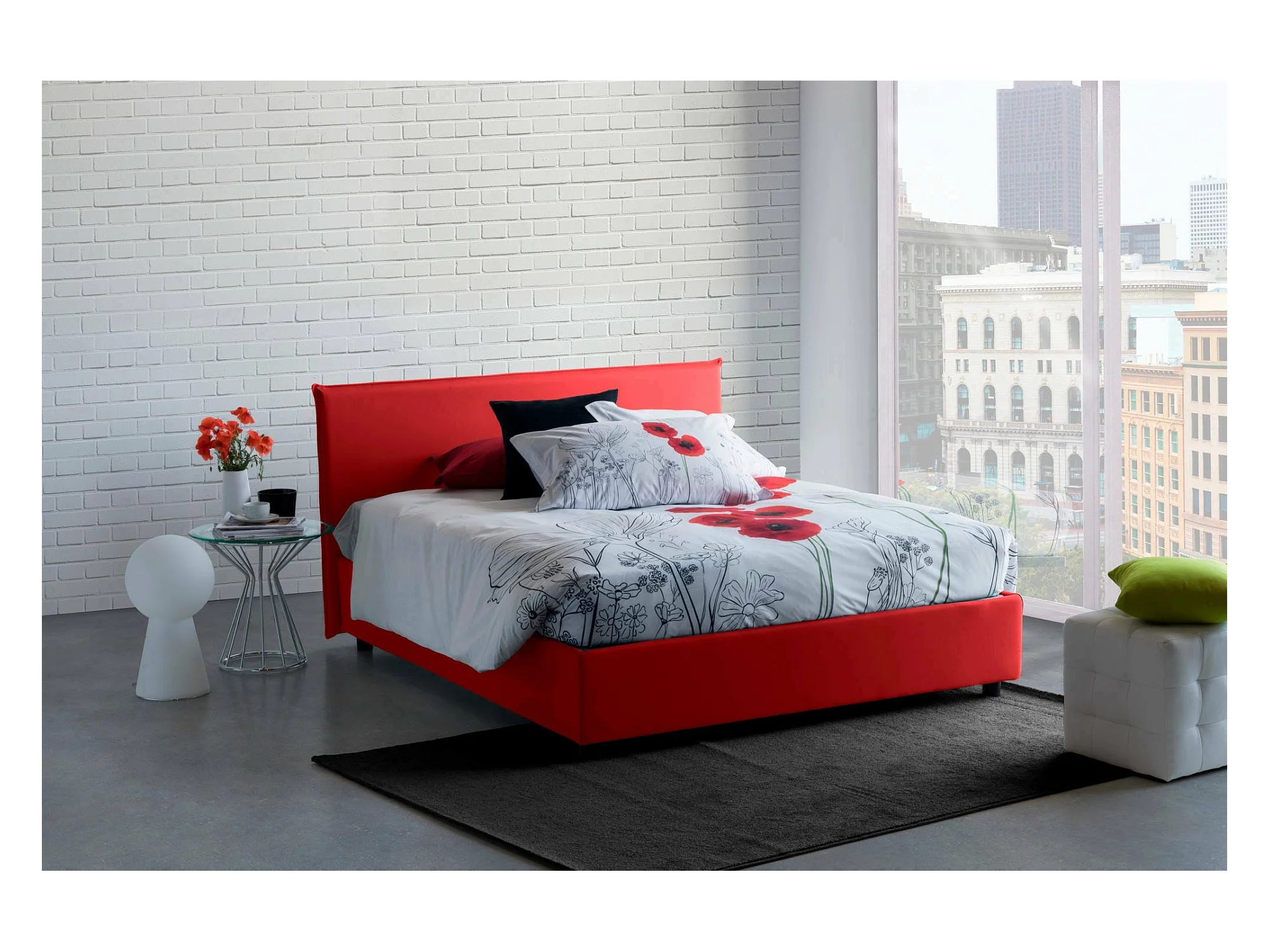 Doppelbett Dame, Containerbett mit Stoffbespannung, 100% Made in Italy, Frontöffnung, inklusive Matratze Cm 160x190, Rot