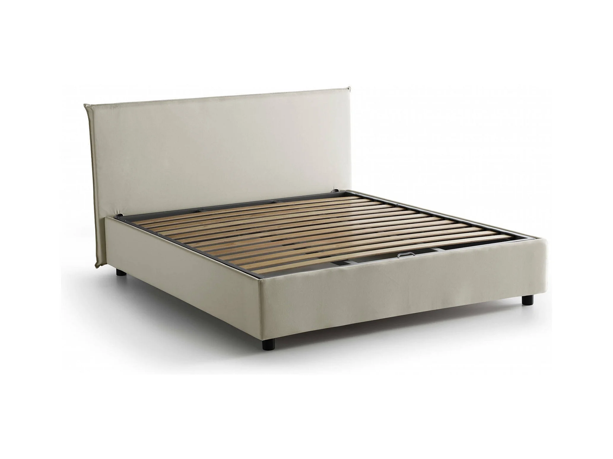 Doppelbett Dangel, Containerbett mit Stoffbespannung, 100% Made in Italy, Frontöffnung, passend für Matratze Cm 160x200, Beige