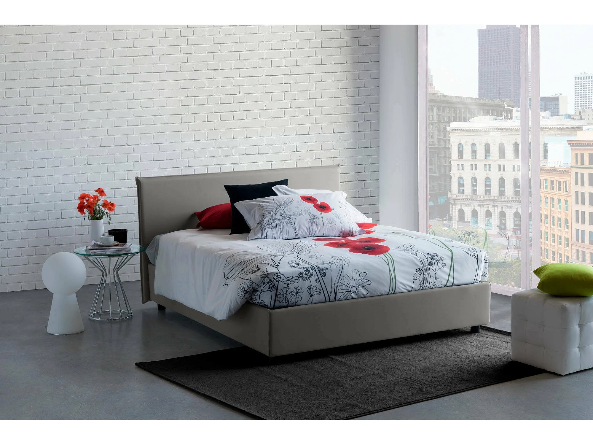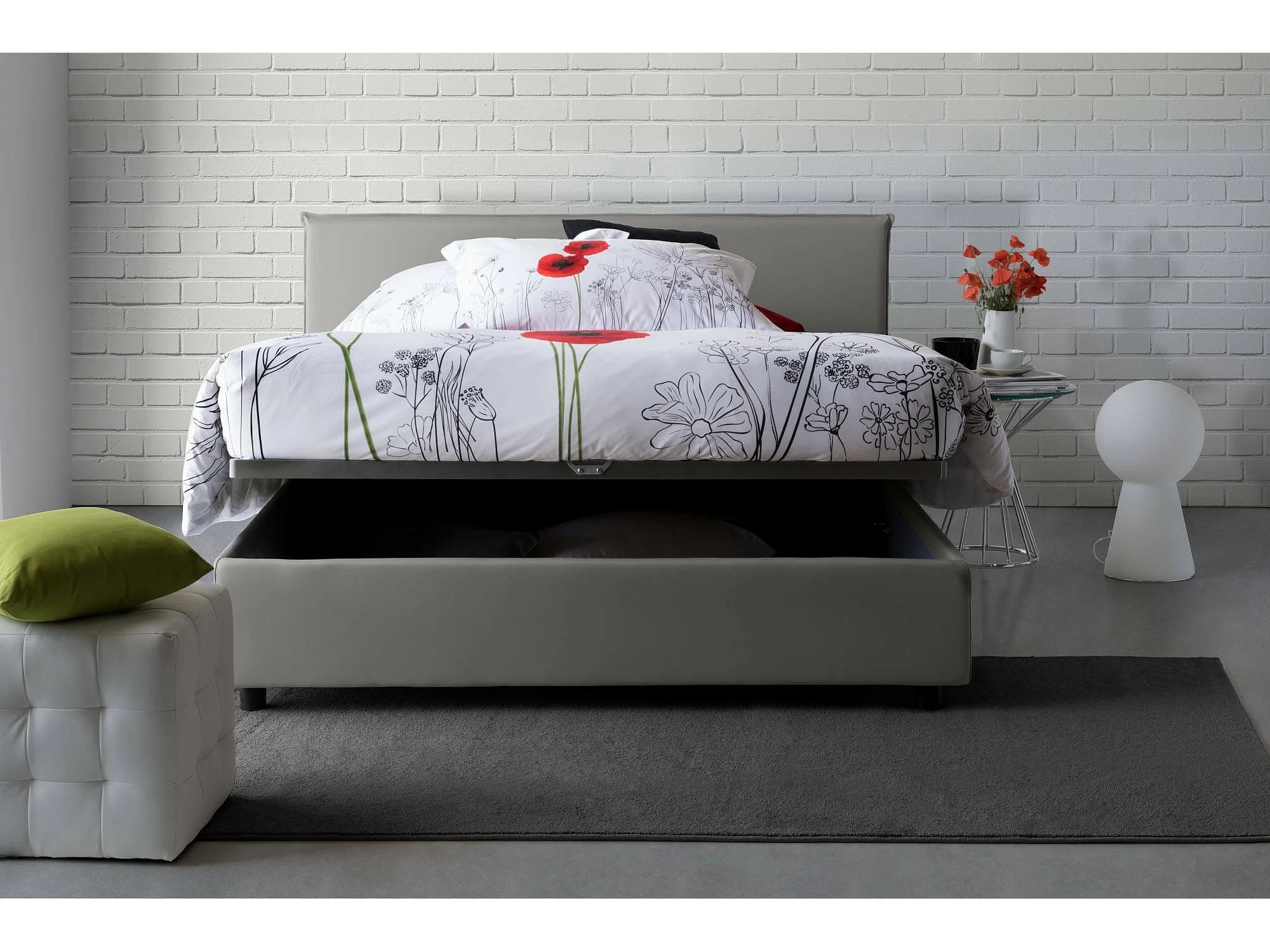 Doppelbett Dansald, Containerbett mit Stoffbespannung, 100% Made in Italy, Frontöffnung, inklusive Matratze Cm 160x200, Grau