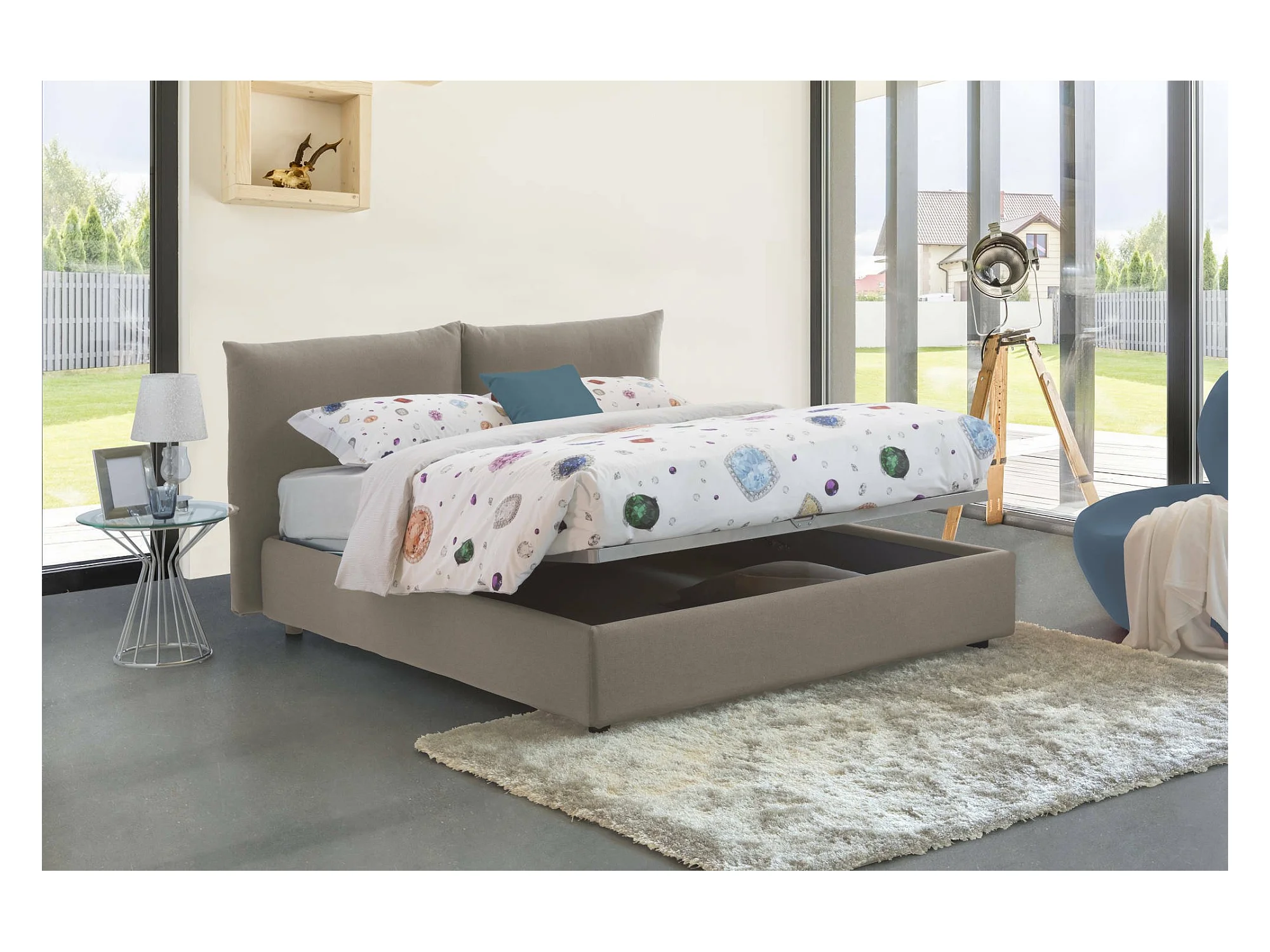 Doppelbett Dbrekal, Containerbett mit Stoffbespannung, 100% Made in Italy, Frontöffnung, inklusive Matratze 160x190 cm, Turteltaube