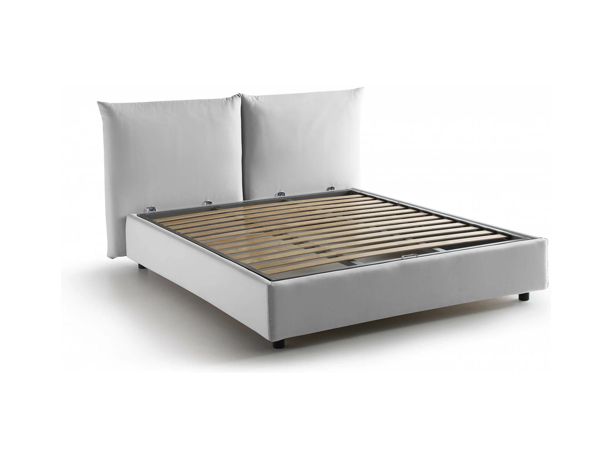 Doppelbett Dbrekal, Containerbett mit Stoffbespannung, 100% Made in Italy, Frontöffnung, inklusive Matratze 160x190 cm, Weiß