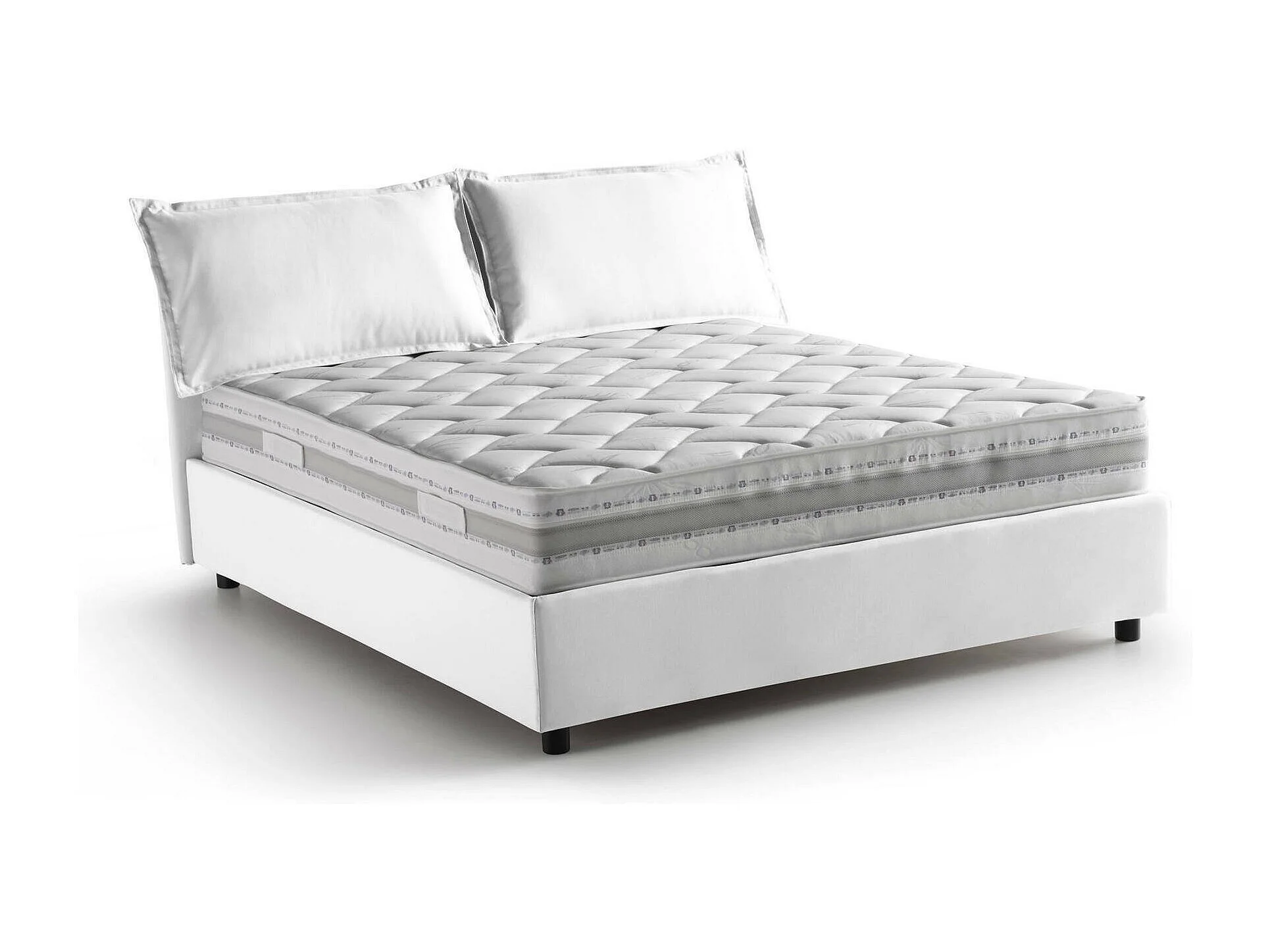 Doppelbett Dcarrar, Containerbett mit Stoffbespannung, 100% Made in Italy, Frontöffnung, inklusive Matratze 160x190 cm, Weiß