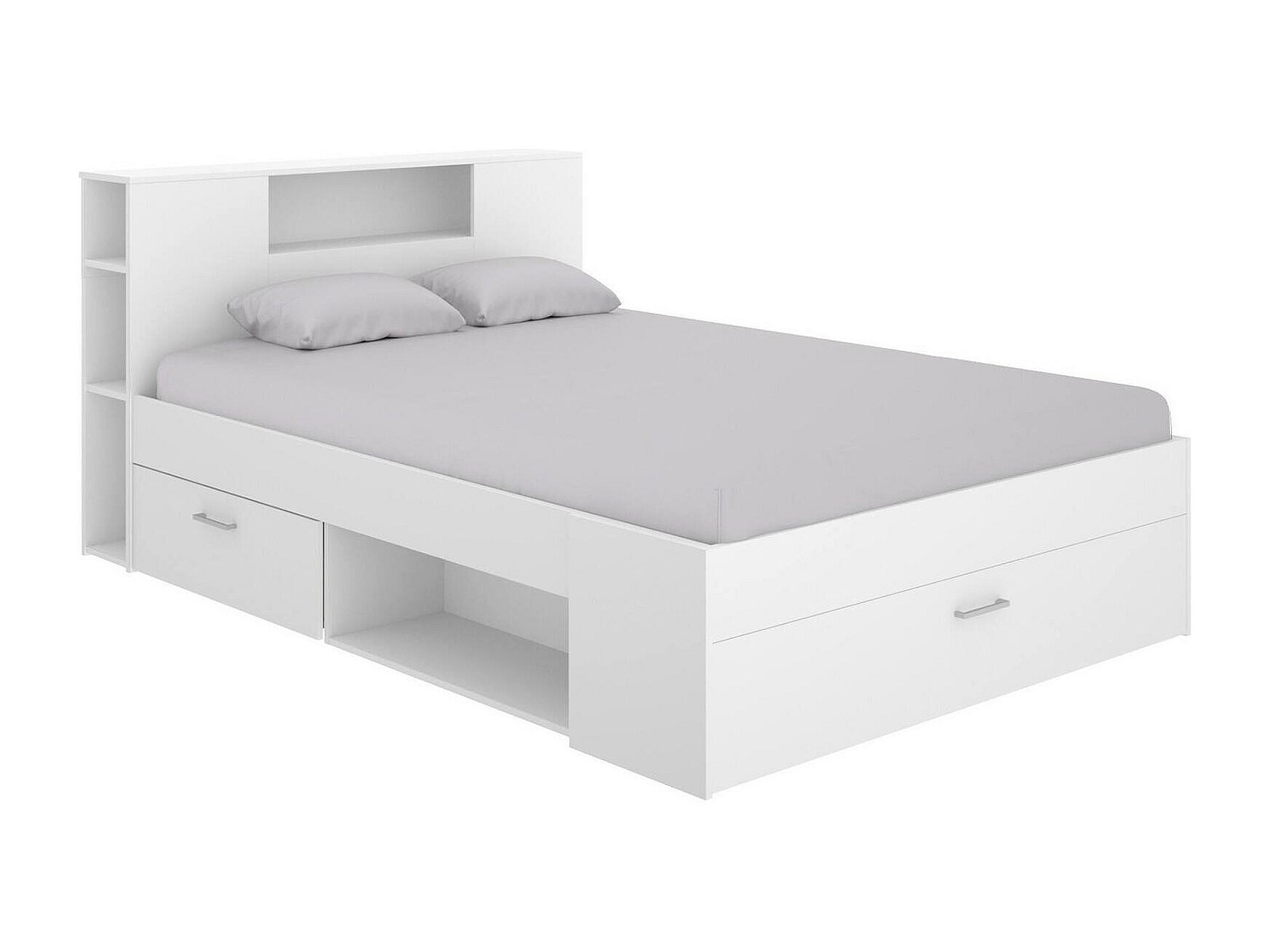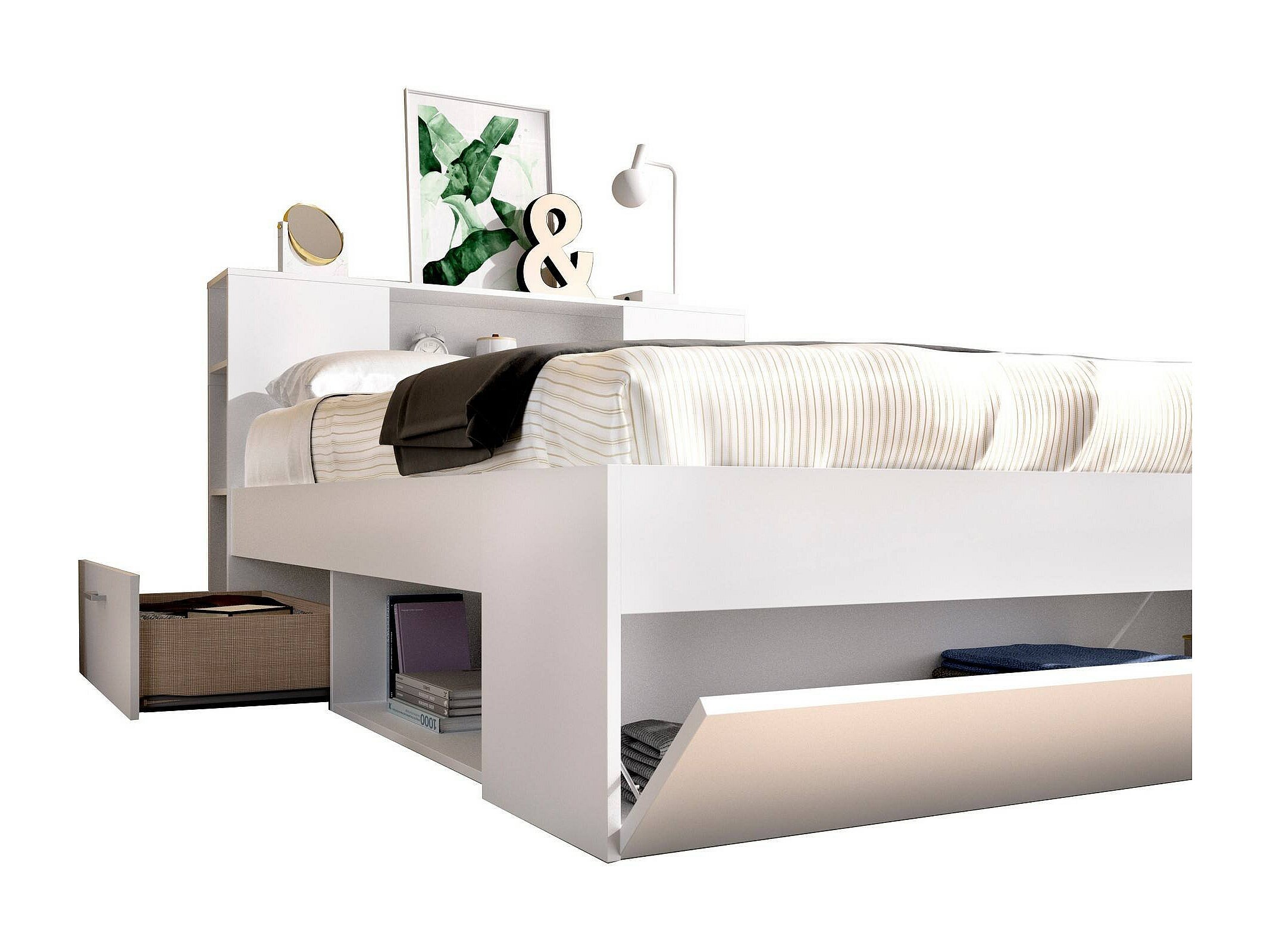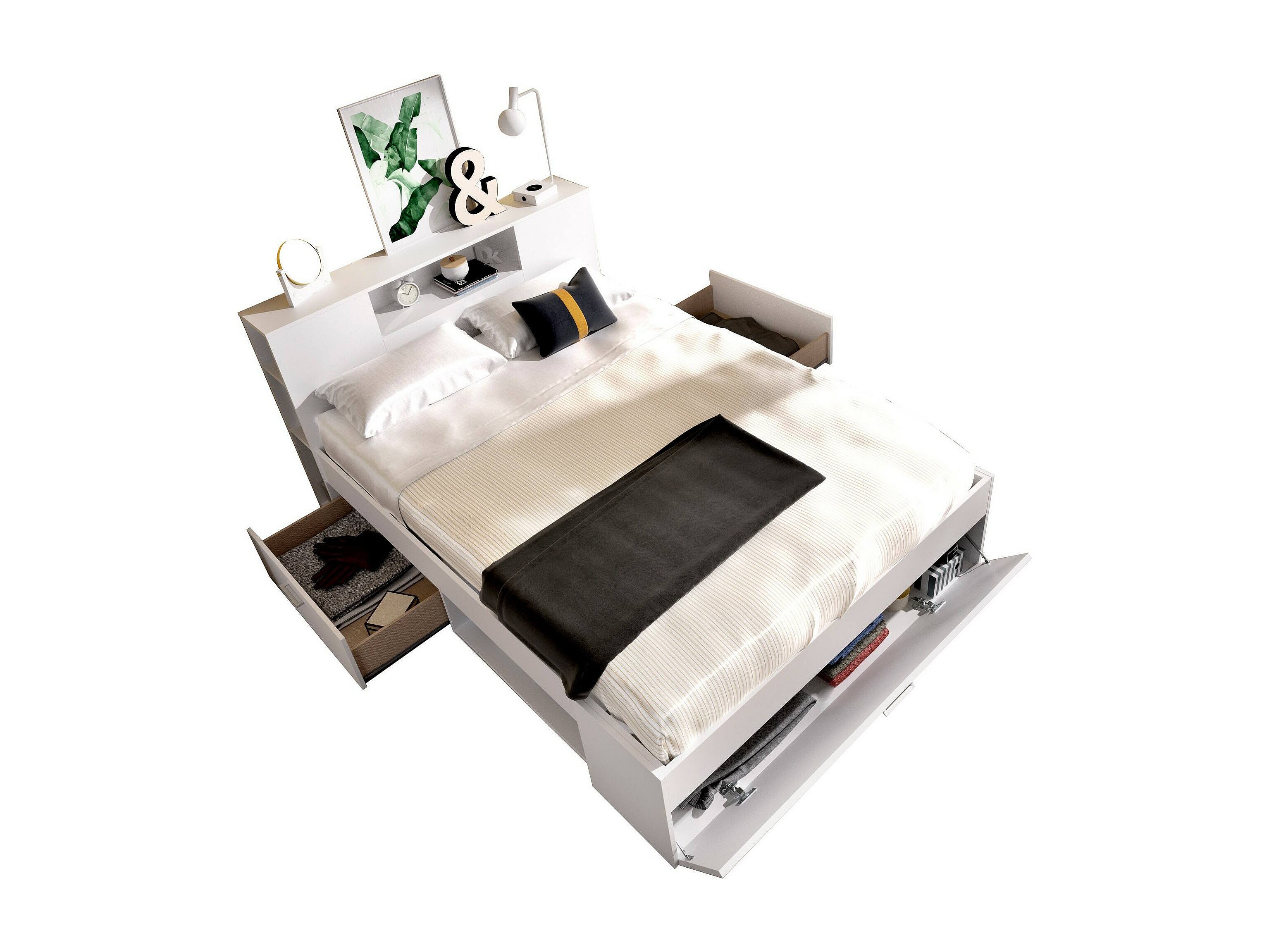 DOPPELBETT - Struktur des Container-Betts, Sommier mit Verkleidung, Matratzenhalterstruktur, 150x219 h95 cm, Weiß. STRUKTUR UND NUTZUNG - Die Struktur des Bettes ist widerstandsfähig und garantiert maximalen Komfort - Dank des hochwertigen Materials und der edlen Verarbeitung ideal, um eine ausgezeichnete und komfortable Nachtruhe zu gewährleisten - Moderne und innovative Struktur, perfekt für jede Art von Raum oder Schlafzimmer. QUALITÃ"T UND DESIGN - Modernes und elegantes Design-Möbelstück, perfekt für die Einrichtung einer zeitgemäßen und hellen Umgebung - Ideal für alle, die nach Funktionalität und platzsparenden Lösungen suchen, ist dieses Produkt perfekt für Häuser und Wohnungen aller Größen - Zwei Jahre Garantie ab Kaufdatum. TECHNISCHE EIGENSCHAFTEN ? Vielseitiges Einrichtungszubehör, konzipiert für die einfache Integration mit anderen Möbeln ? Widerstandsfähige Verpackung, konzipiert für den E-Commerce - Material: Melaminbeschichtete Platte 16mm, Melaminbeschichtete Platte 19mm - Zusätzliche Infos: Vollständig aus Melamin-Spanplatte gefertigt, einem Material, das stoß- und kratzfest, langlebig und wasserfest ist ? Kanten mit Melaminbeschichtung ? Klassifizierung nach Gehalt oder Freisetzung von Formaldehyd TYP E1 ? Einfache und schnelle Montage: Dank der mitgelieferten Montagewerkzeuge Zusammen mit dem Produkt und der Bedienungsanleitung können Sie Ihr Produkt in wenigen Minuten zusammenbauen ? Mit fünf offenen Fächern, einer Schublade und einem Fach mit Klapptür ? Griffe im Lieferumfang enthalten ? Geeignet für eine 190 x 90 cm große Matratze und Untergestell ? Matratze nicht im Lieferumfang enthalten ? Bettgestell mit Eckstützen aus Metall zum Aufstellen des Bettgestells ausgestattet - Untergestell mit Metallprofil erforderlich, nicht im Lieferumfang enthalten - Maximales Stützgewicht des Bettes: 75 kg - Maximales Stützgewicht pro Schublade: 10 kg. ABMESSUNGEN IN CM - Doppelbett : Länge: 149,6 Breite: 218,5 Höhe: 95
