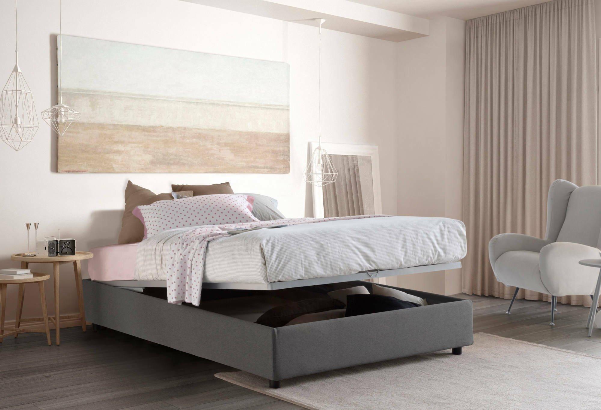 STRUKTUR - Die Bettstruktur besteht aus hochgezogener Holzfaser mit ABS-Füßen: Der Bettrahmen ist mit Weißhem Polyesterstoff bezogen, der abnehmbar und bei 30° in der Maschine waschbar ist - Der Lattenrost aus Sperrholz ist in der Struktur enthalten - Öffnungsmechanismus aus Eisen - Die Mit der praktischen platzsparenden Aufbewahrungsbox verwandelt sich das Bett in eine geräumige Box für Laken, Kissen und Bettdecken.