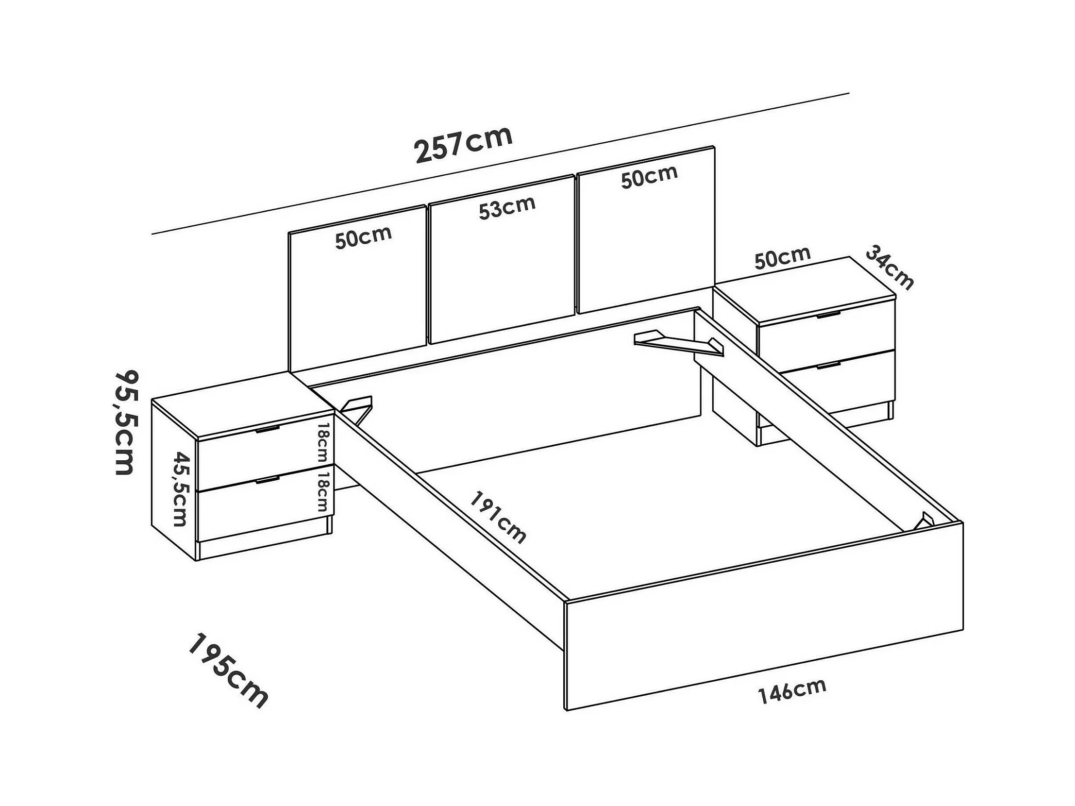 Doppelbett Dtaylo, Struktur des Container-Betts, Sommier mit Verkleidung, Matratzenhalterstruktur, 267x205 h96 cm, Weiß