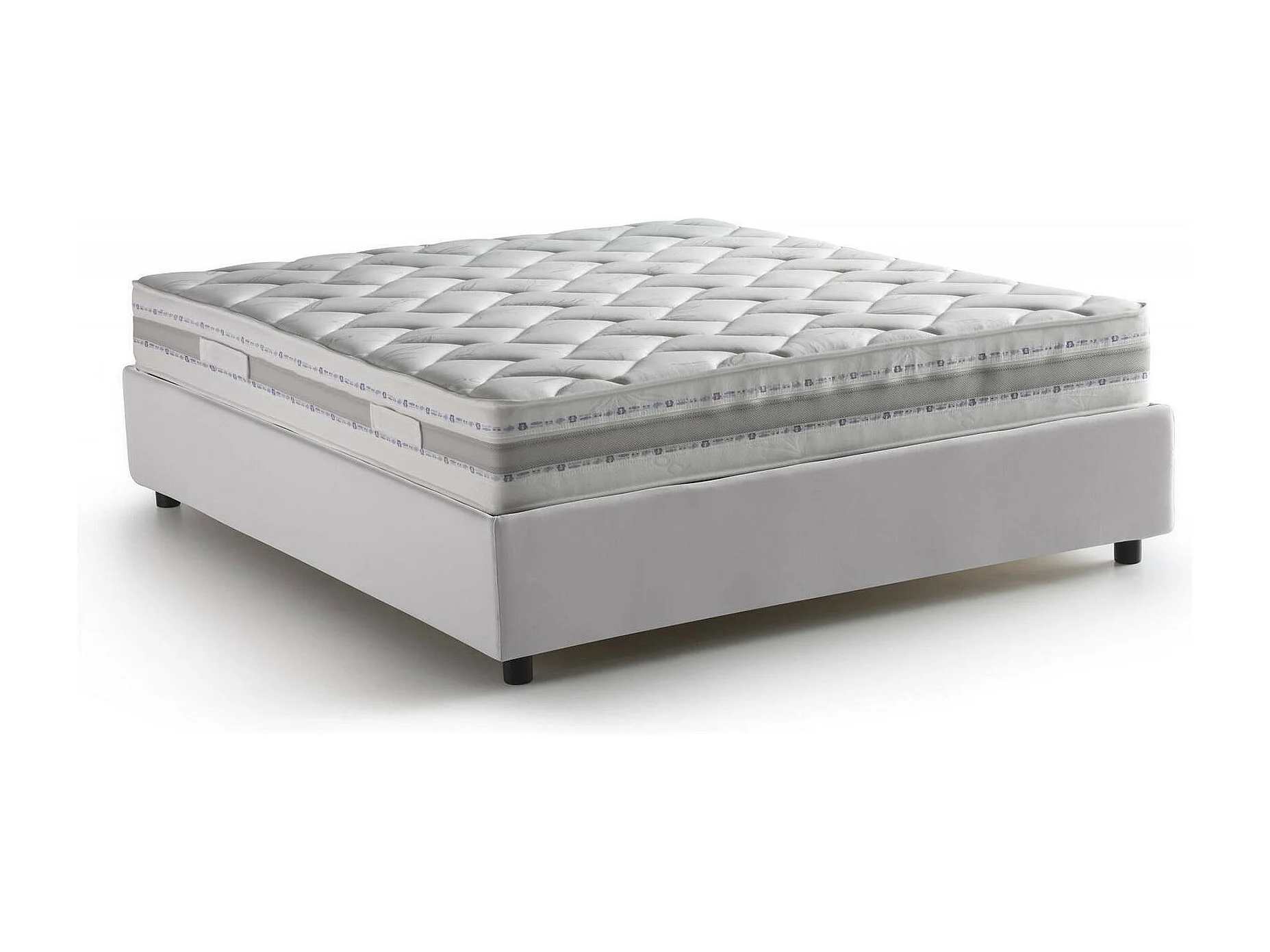 Doppelbett Elena, Bettkasten mit Kunstlederbezug, 100 % Made in Italy, Öffnung vorne, inklusive Matratze 140 x 190 cm, Weiß