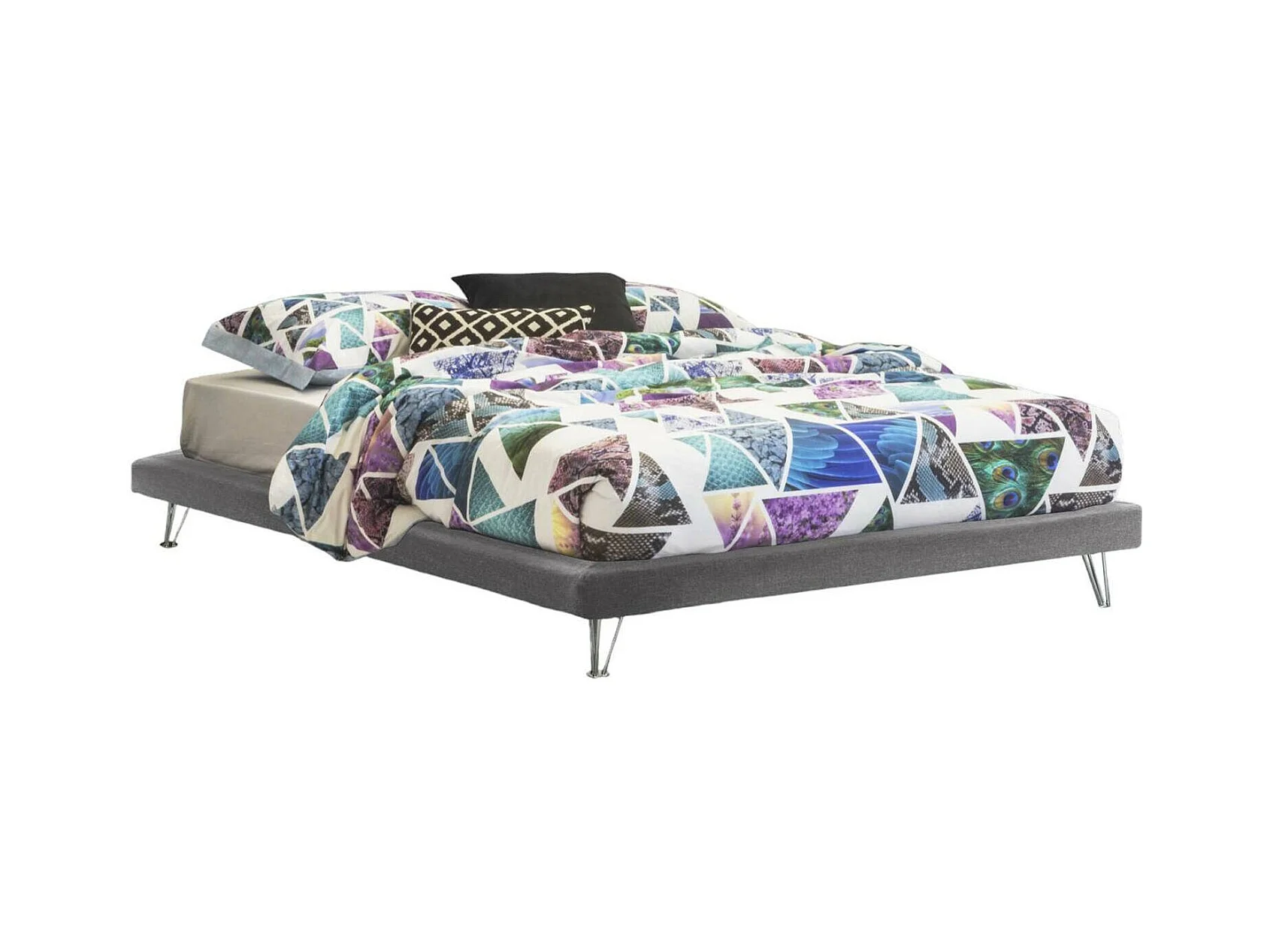 Doppelbett Isabella, Festbett aus Stoff mit Füßen, 100 % Made in Italy, geeignet für Matratze 160 x 190 cm, Grau