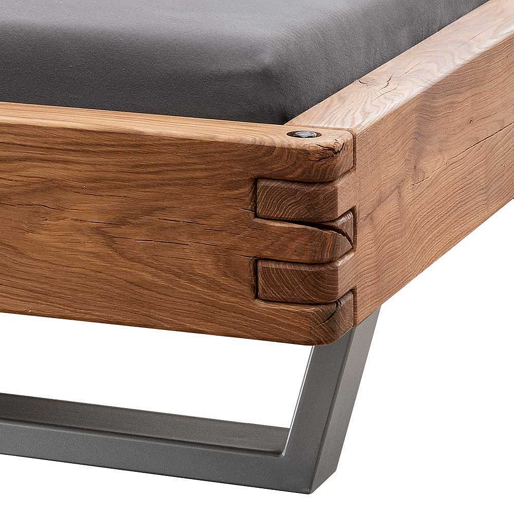 Doppelbett Massivholzbett in Wildeichefarben im Industry und Loft Stil