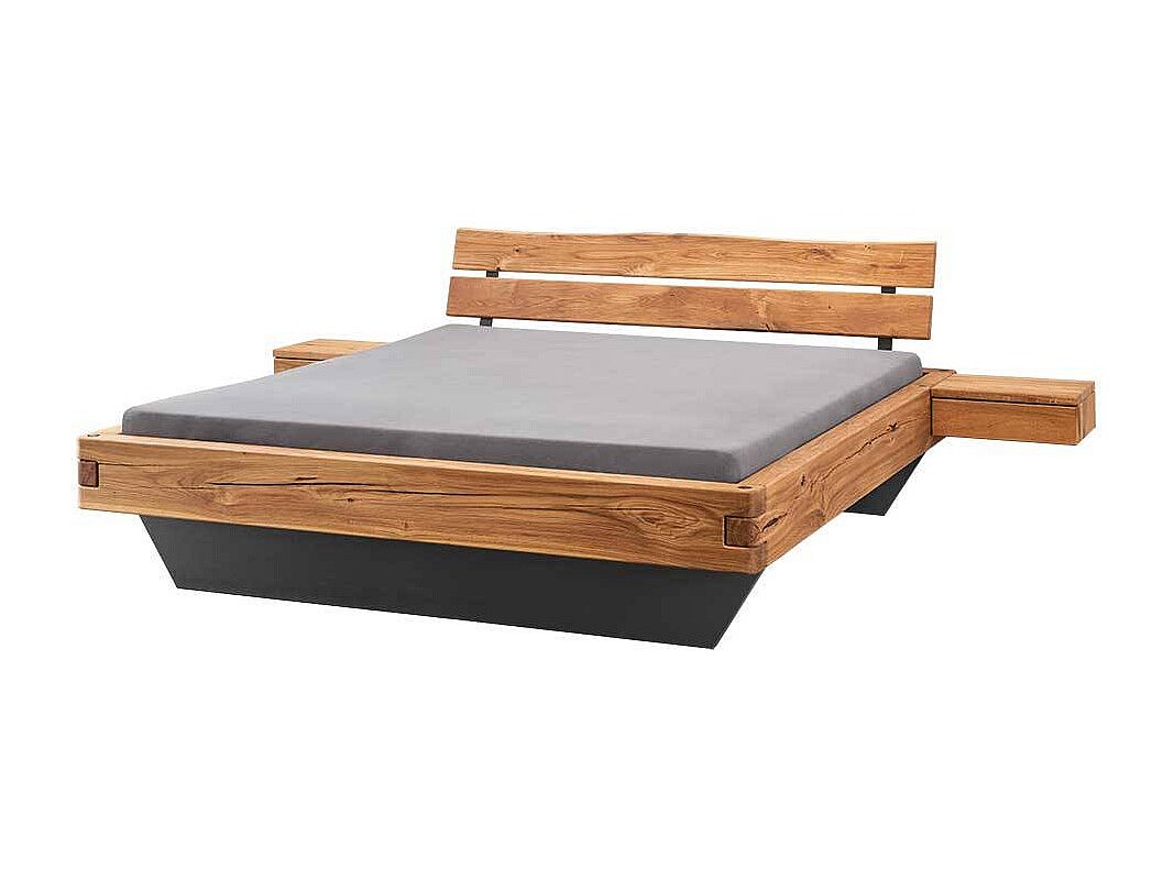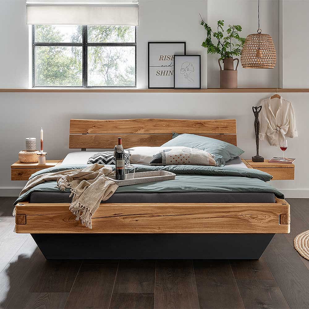 Doppelbett Massivholzbett in Wildeichefarben und Anthrazit
