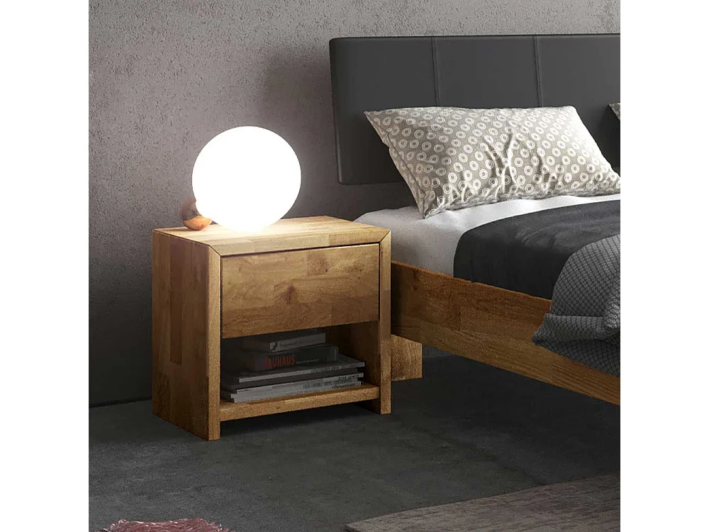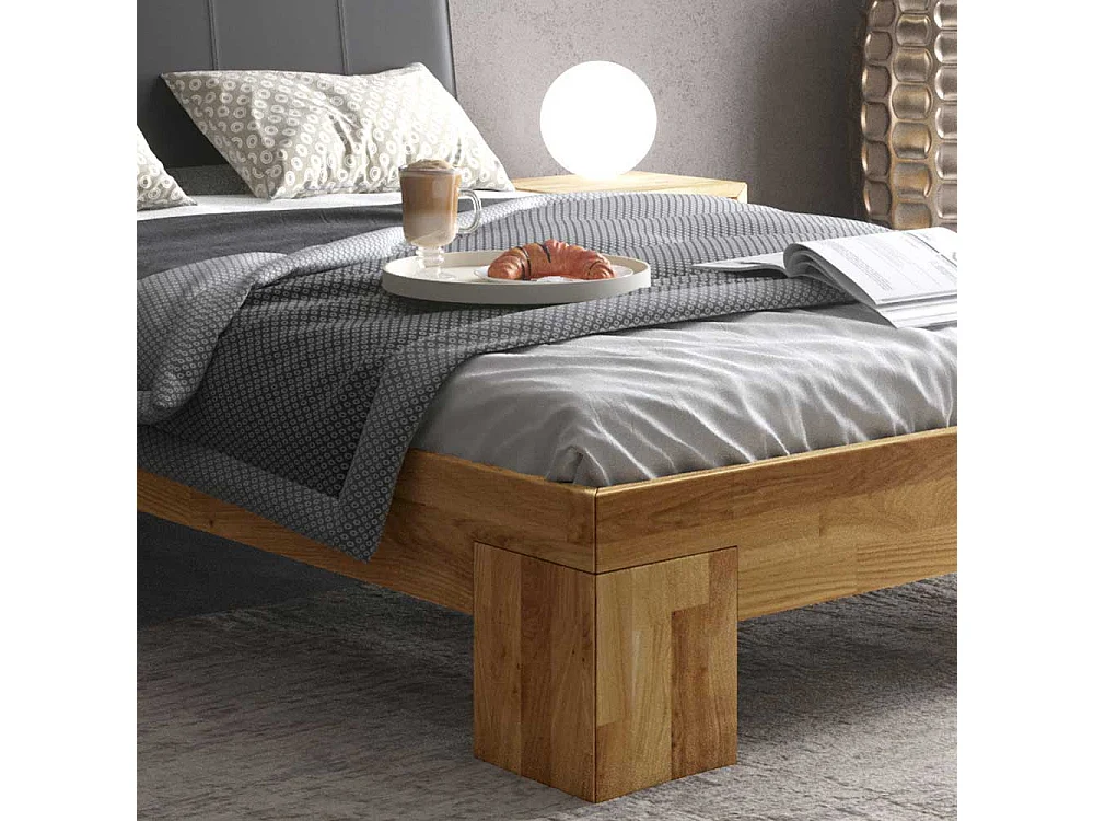 Doppelbett mit Konsolen in Eiche und Schwarz Massivholz (dreiteilig)