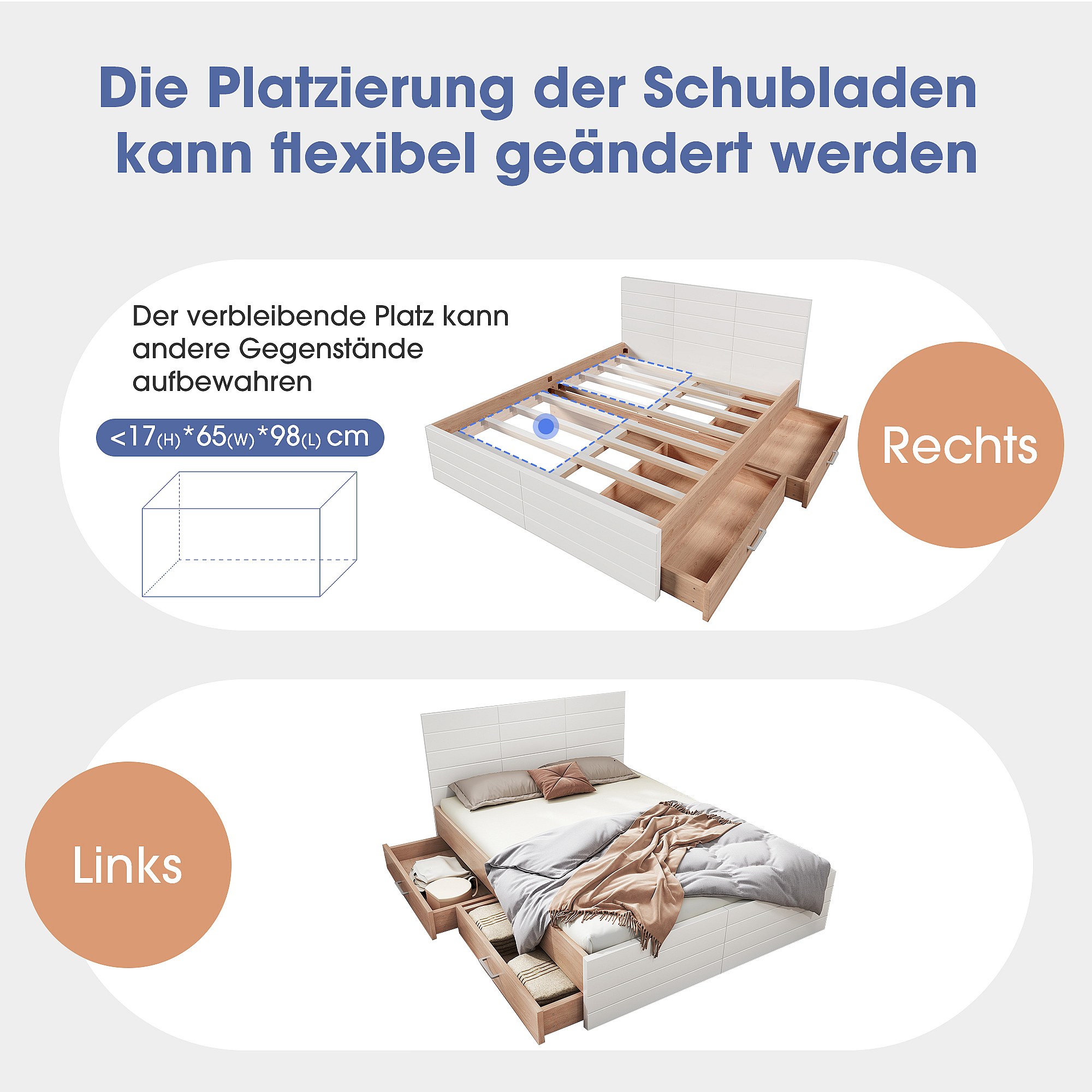 Doppelbett mit Stauraum - 160 x 200 cm - mit 2 Schubladen - mit Matratze - weiß