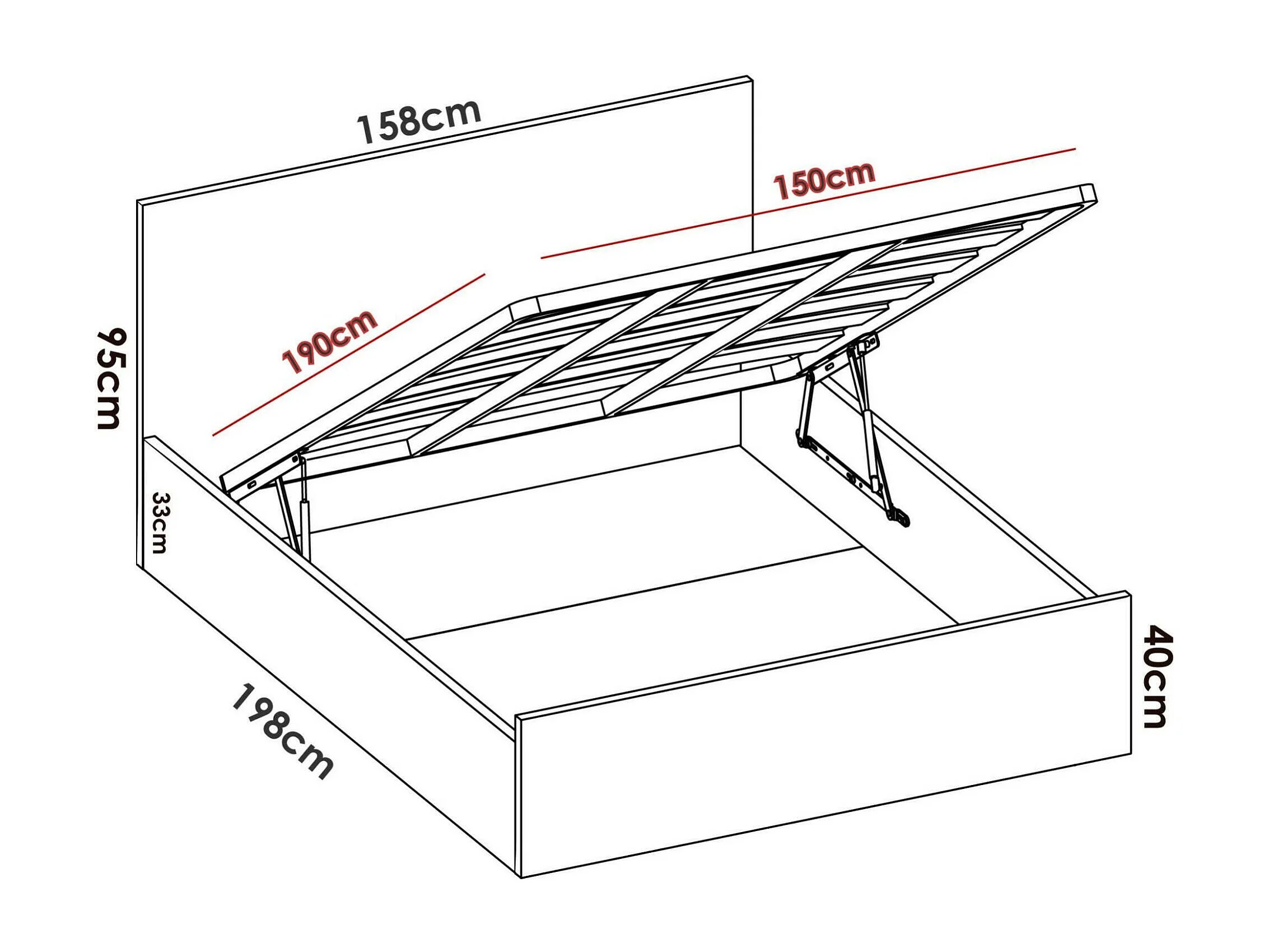 Doppelbett Piglione, Sommier Bettrahmen inklusive Netz, Bettrahmen Behälter für Matratze von 150cm 190cm, 197x158h95 cm, Eiche