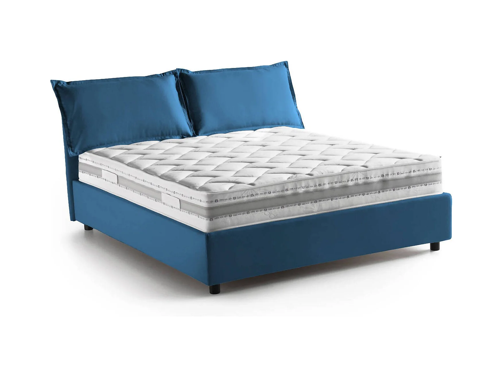 Doppelbett „Teresa“, Bettkasten mit Stoffbezug, 100 % Made in Italy, Öffnung vorne, inklusive Matratze 140 x 200 cm, Blau