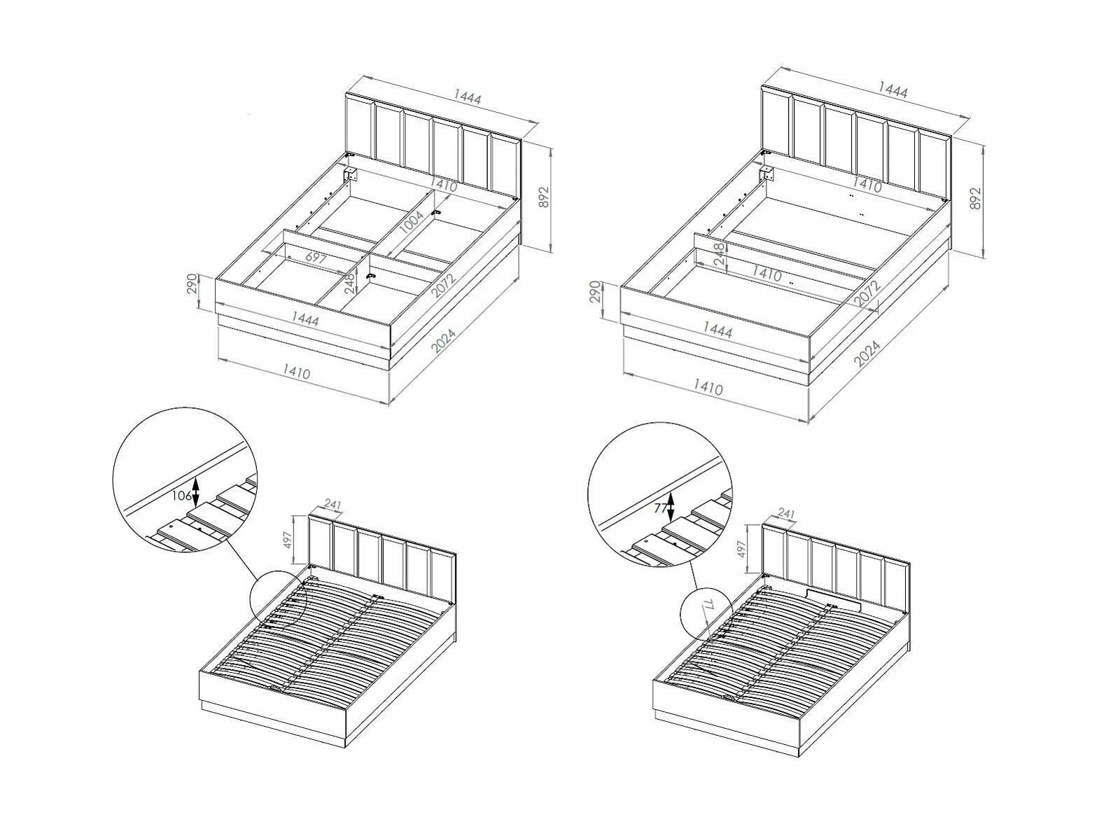 DOPPELBETT Urso Gold Craft Eiche / Schwarz 145 / 208 / 90 cm