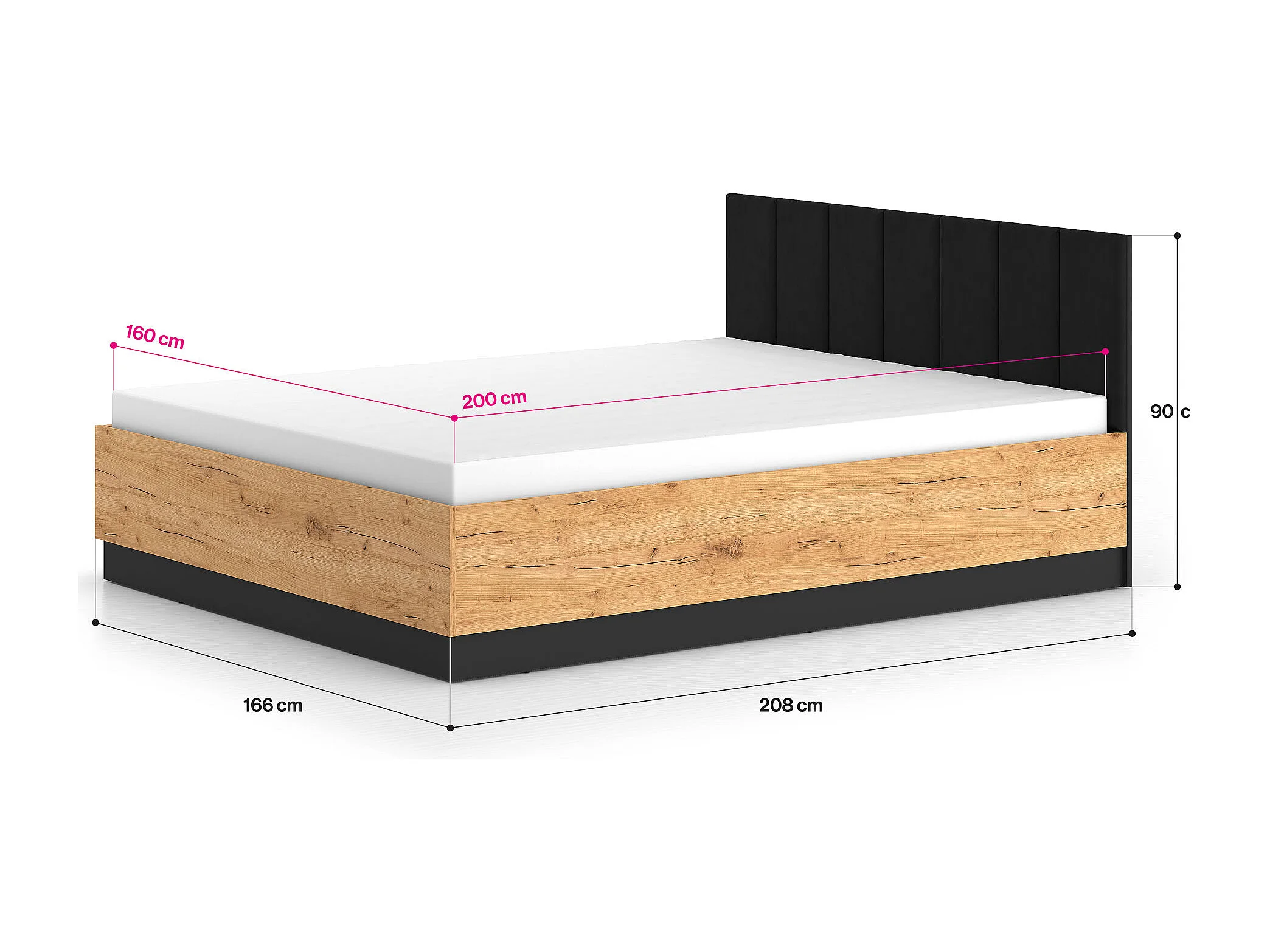 DOPPELBETT Urso Gold Craft Eiche / Schwarz 165 / 208 / 90 cm
