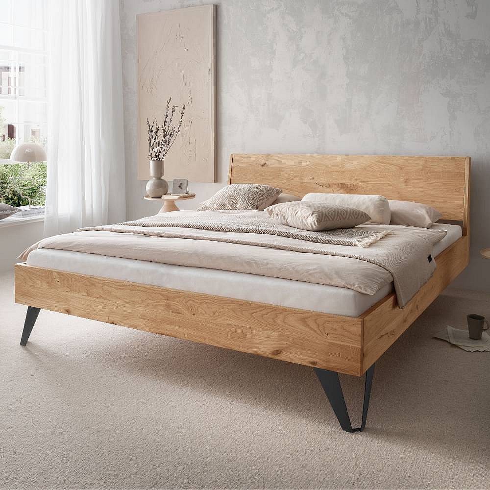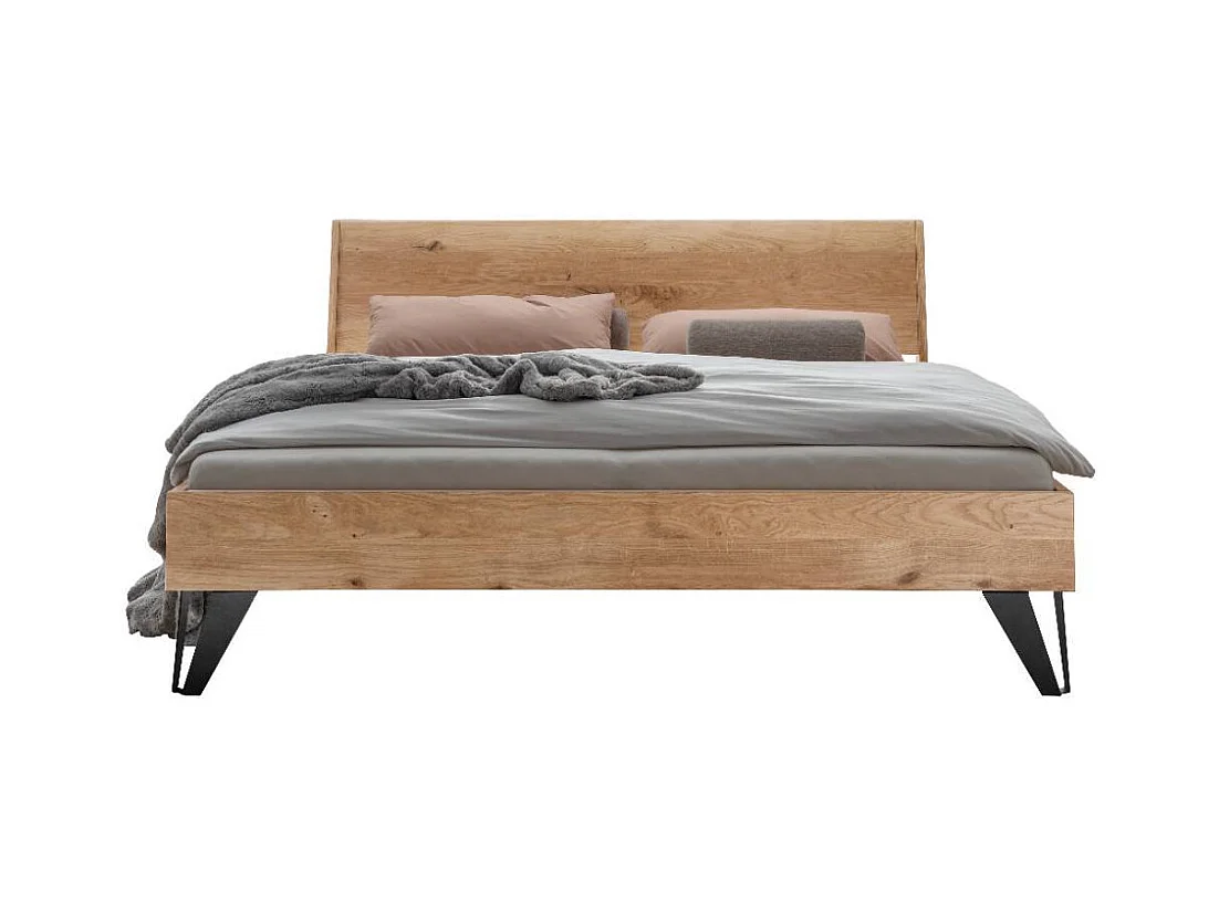 Doppelbetten Holzbett mit Fußgestell aus Metall im Industry und Loft Stil