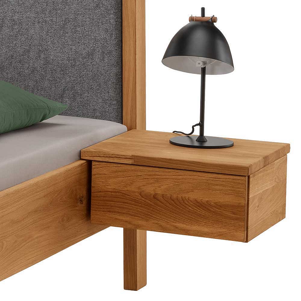 Doppelbetten in Wildeichefarben und Grau Vierfußgestell aus Holz