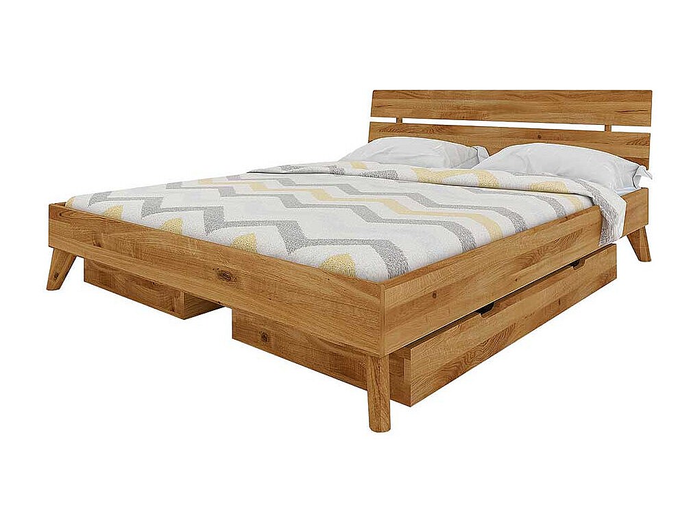 Doppelbettgestell aus Wildeiche Massivholz Schubladen