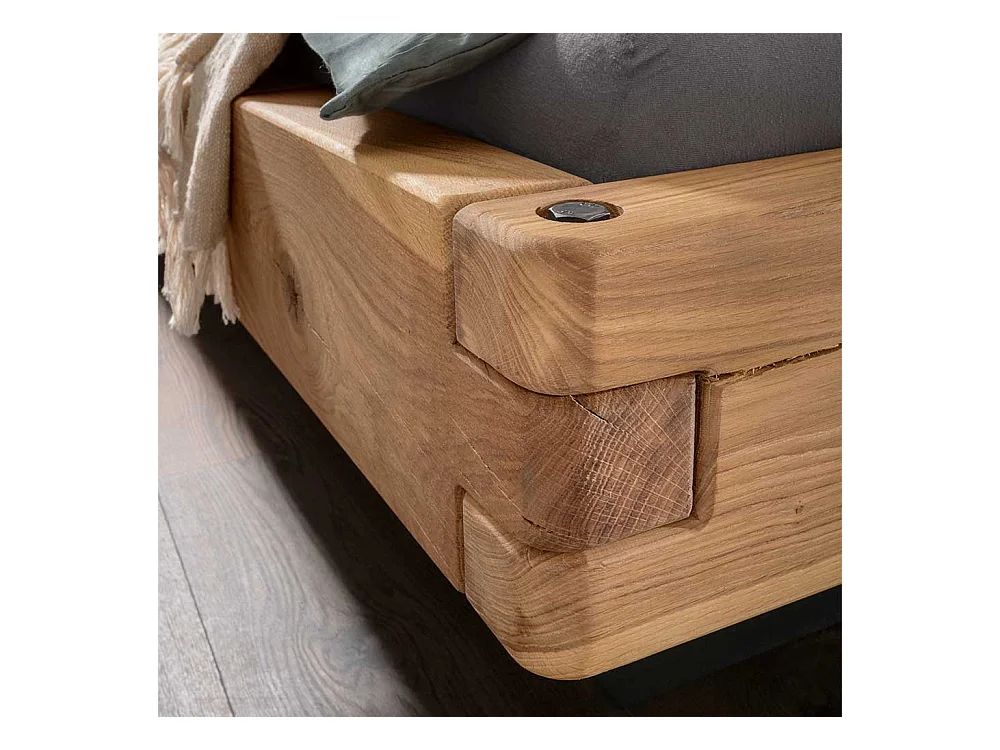 Doppelbettgestell Massivholzbett in Wildeichefarben mit Bügelgestell