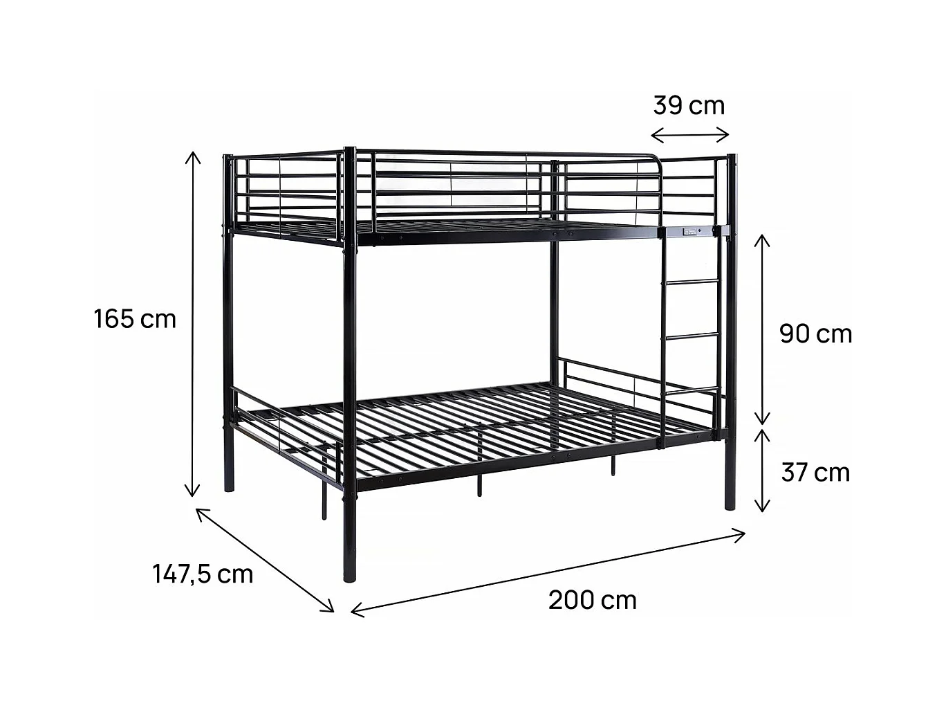 Doppel-Etagenbett "Adam" - Lattenrost inklusive - 140 x 190 cm - Schwarz