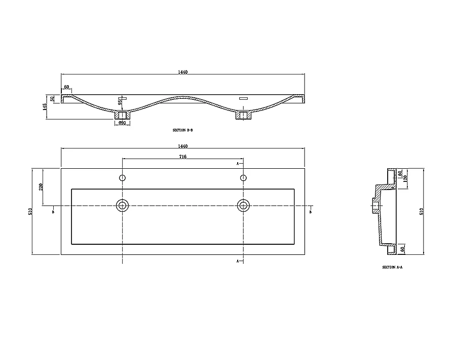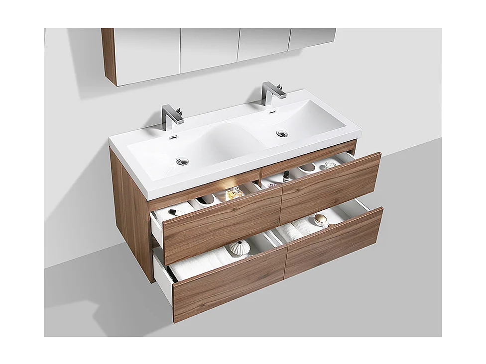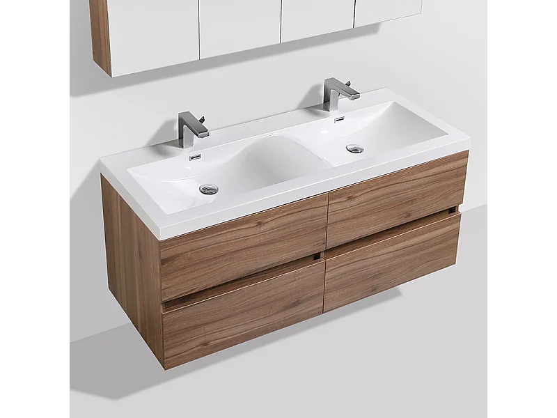 Doppelwaschtisch + Unterschrank 144cm montiert Nussbaum SIENA