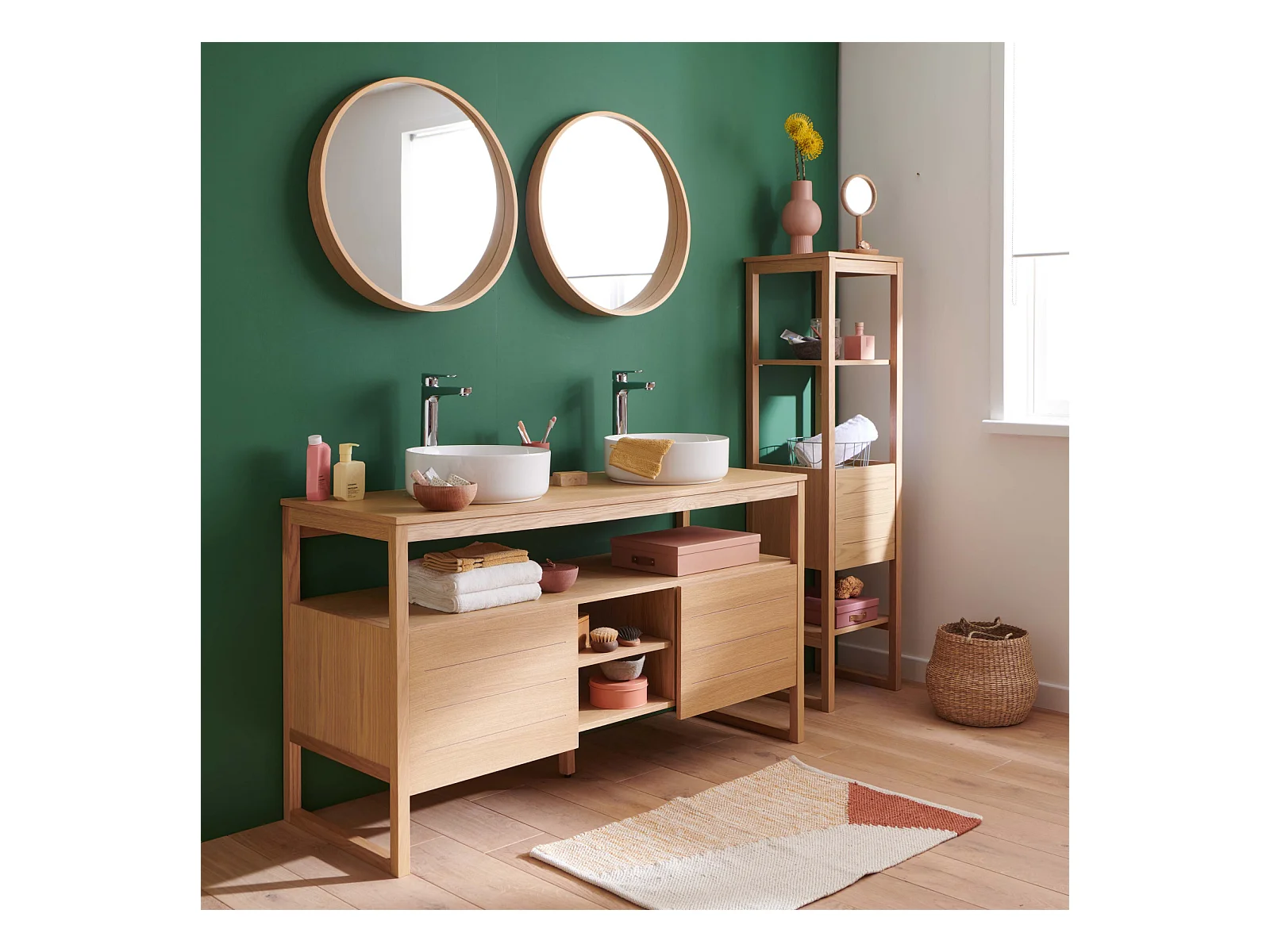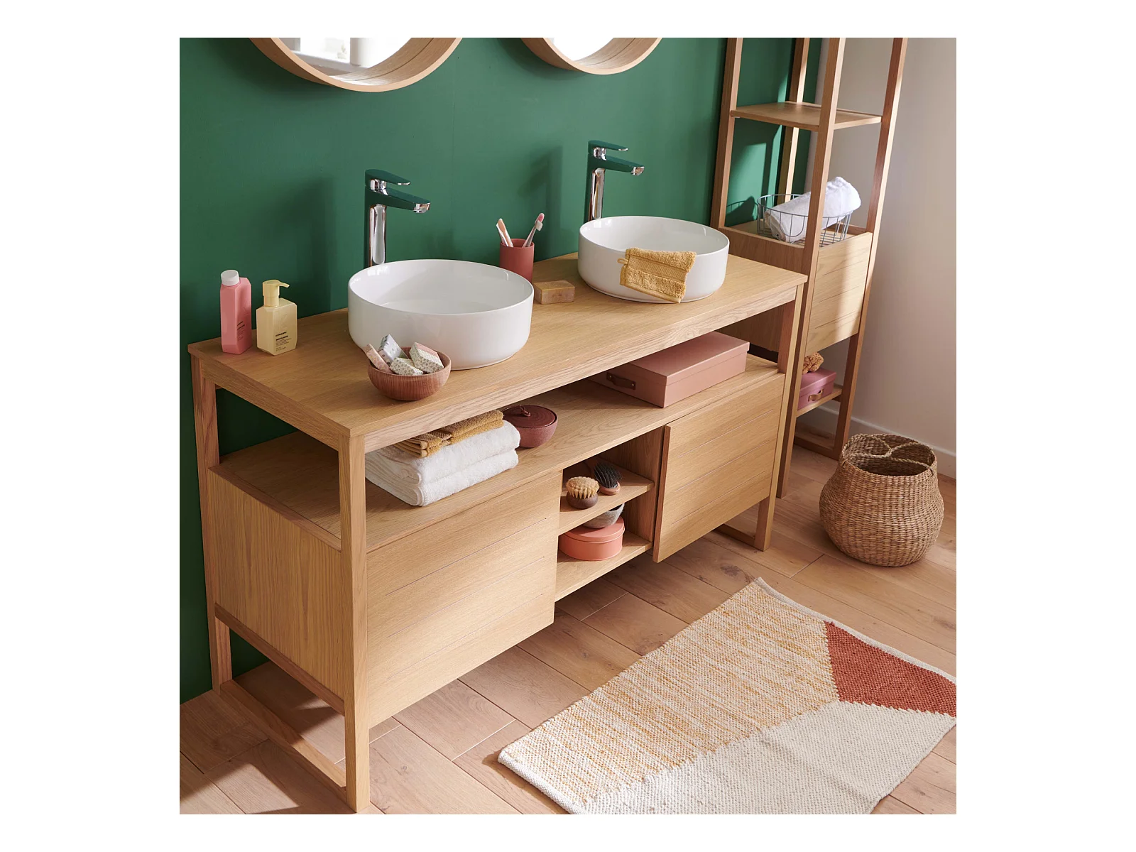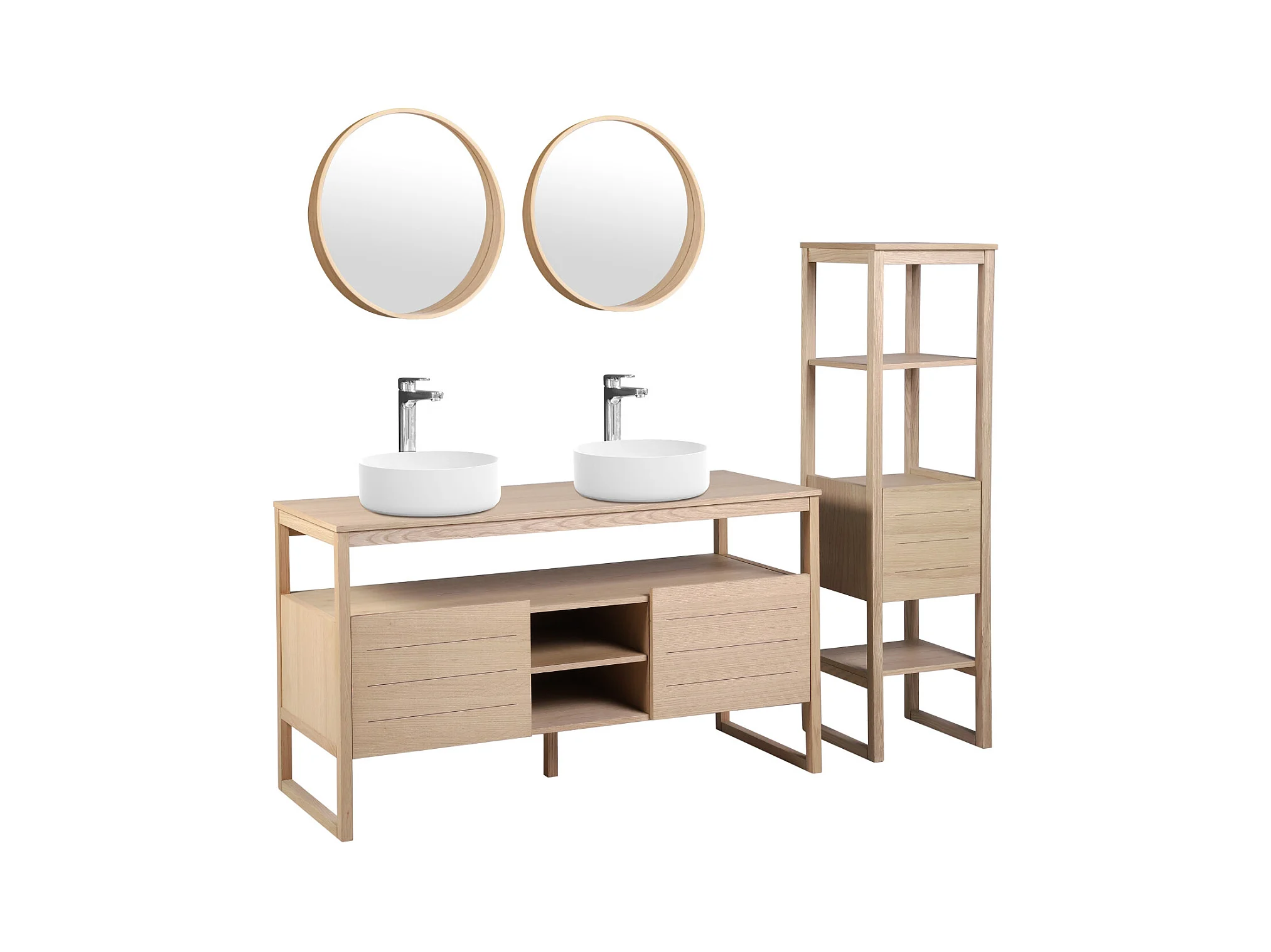 Doppelwaschtisch + Waschbecken + Spiegel + ATOLL-Säule