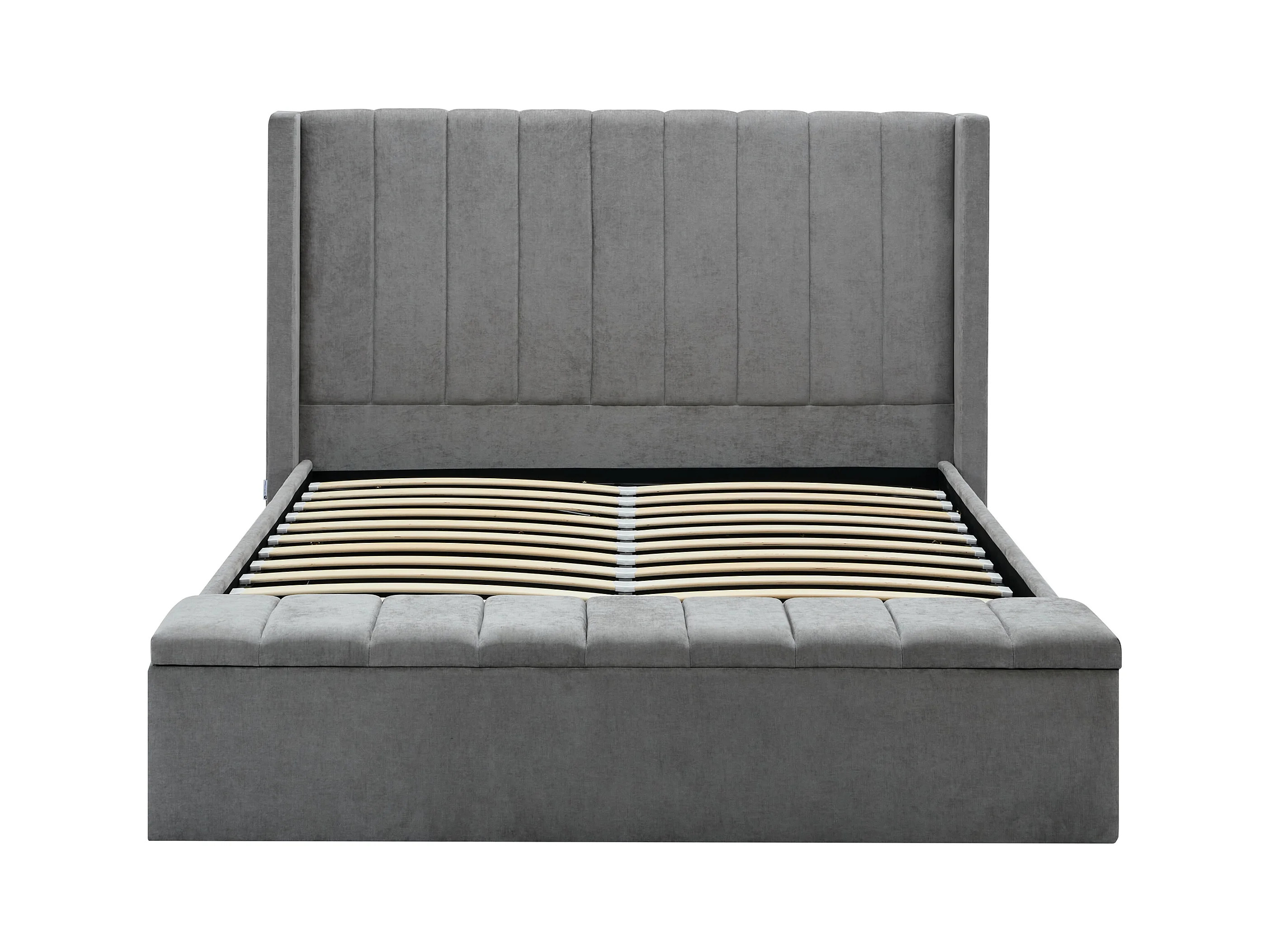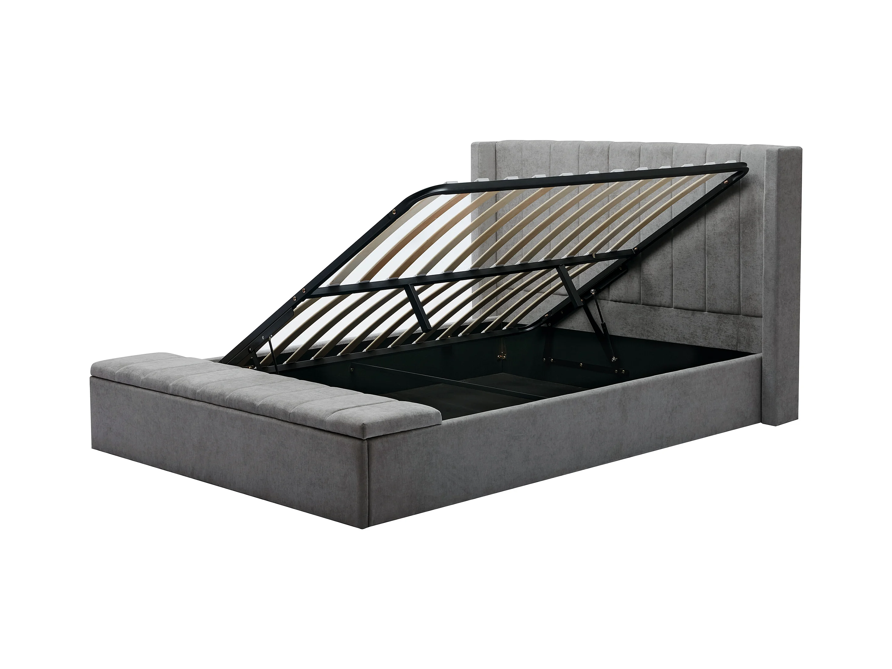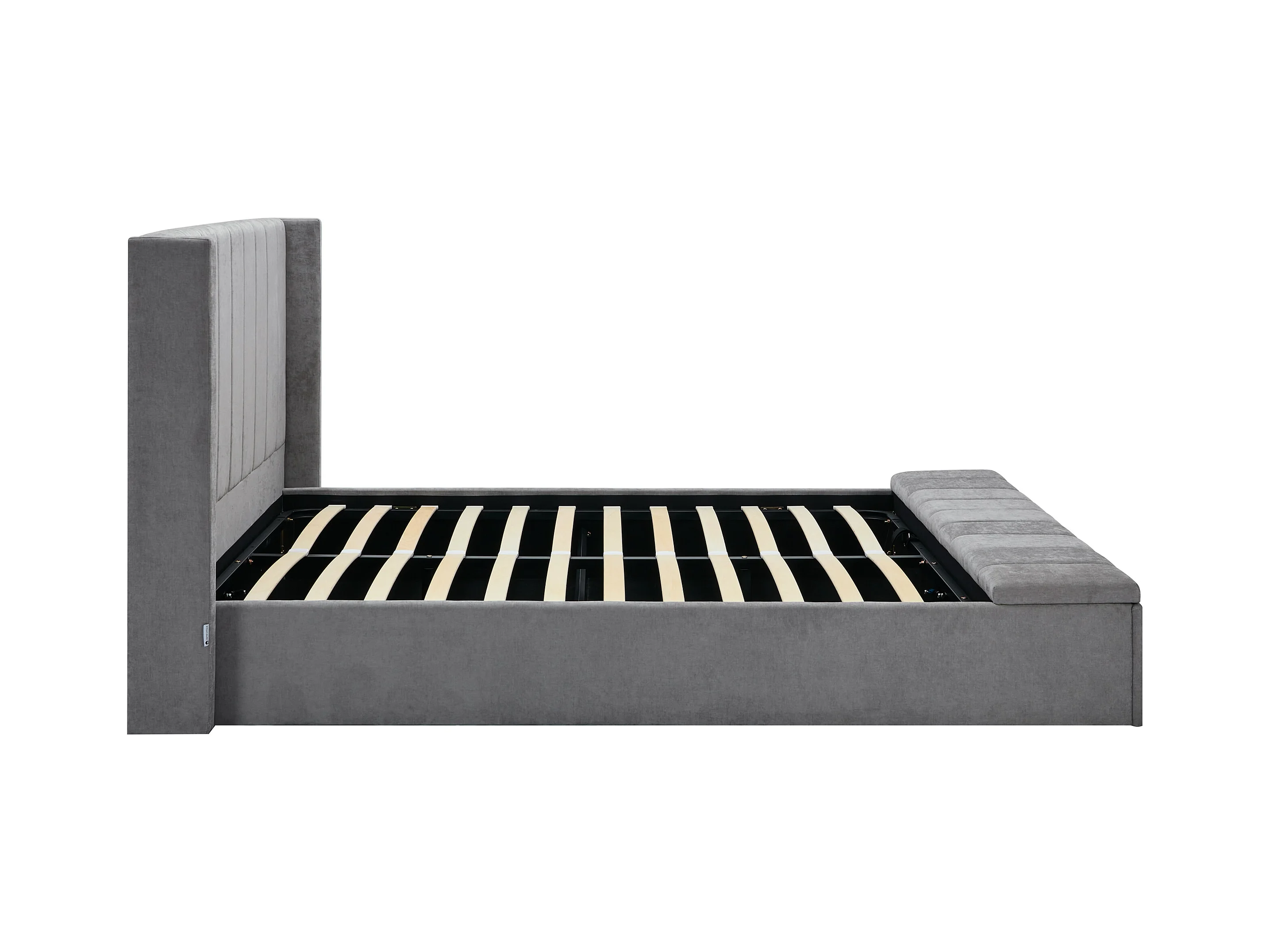 Bett mit Bettkasten & Bank - 160 x 200 cm - Stoff - Grau - DOUINO