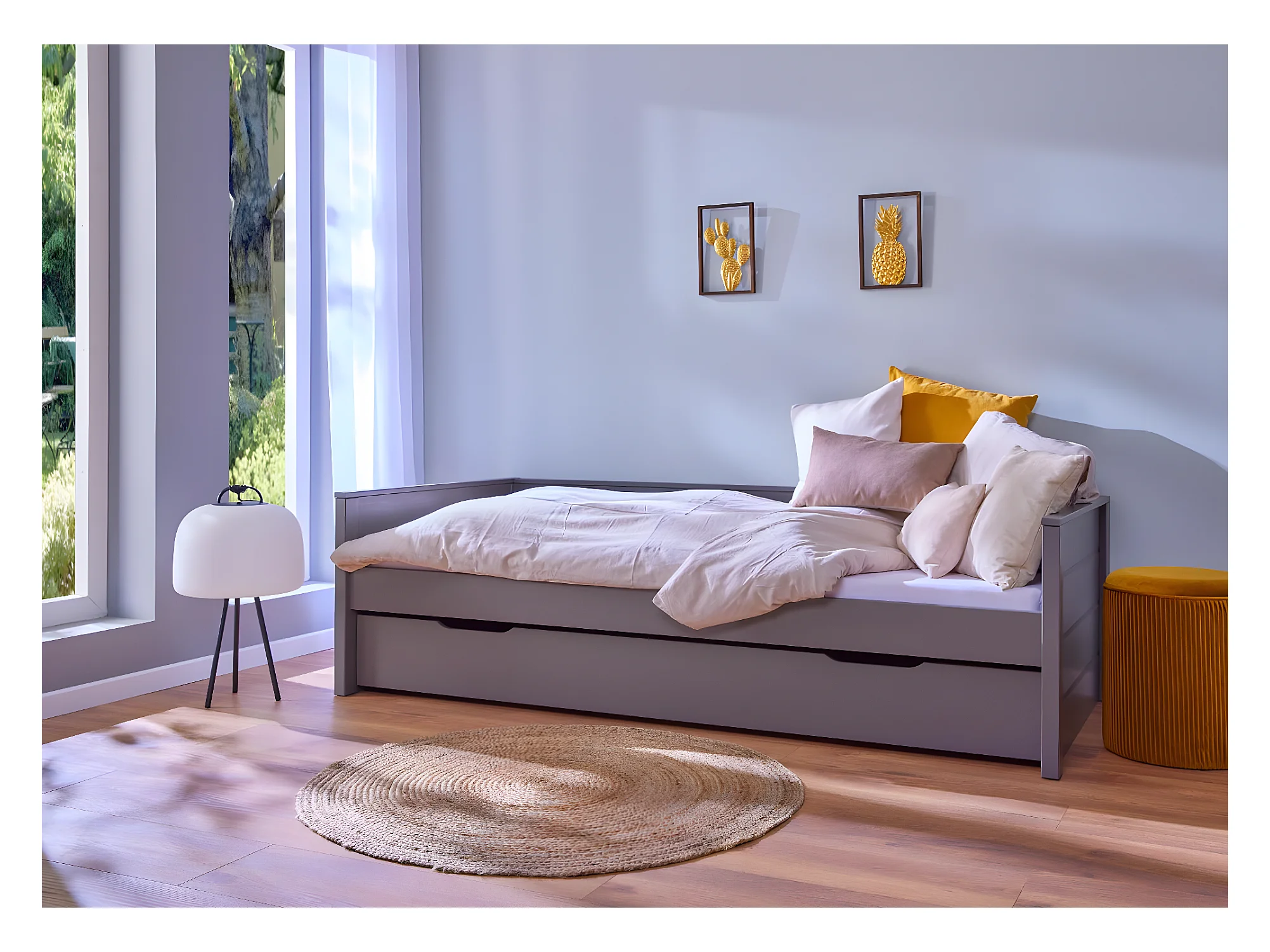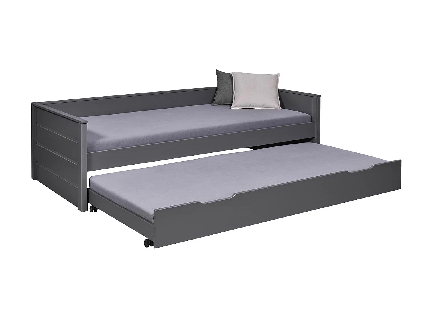 Dream Bett 90x200cm mit 1 ausziehbares Bett grau.