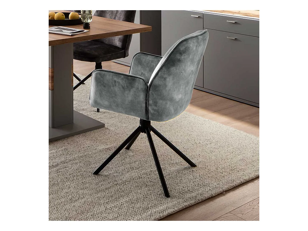 Drehbare Armlehnenstühle in Grau Velours Metallgestell (2er Set)