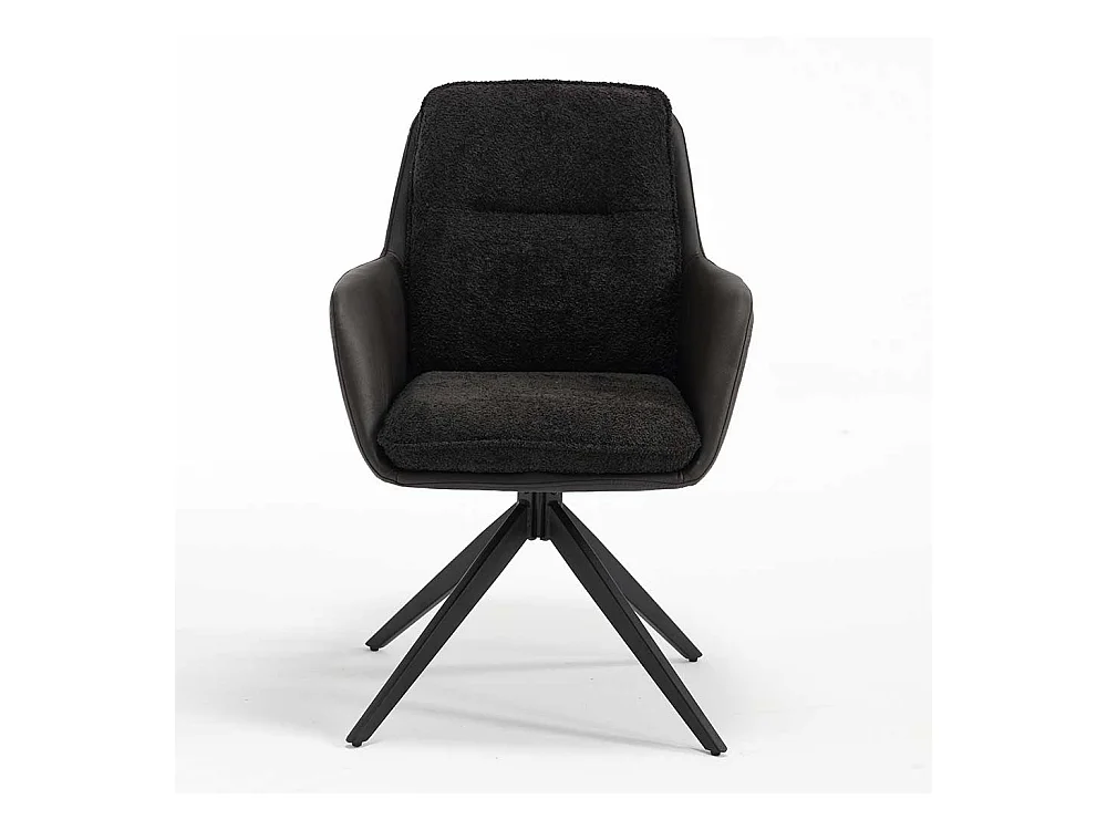 Drehbare Armlehnstühle aus Boucle Stoff Kunstleder (2er Set)