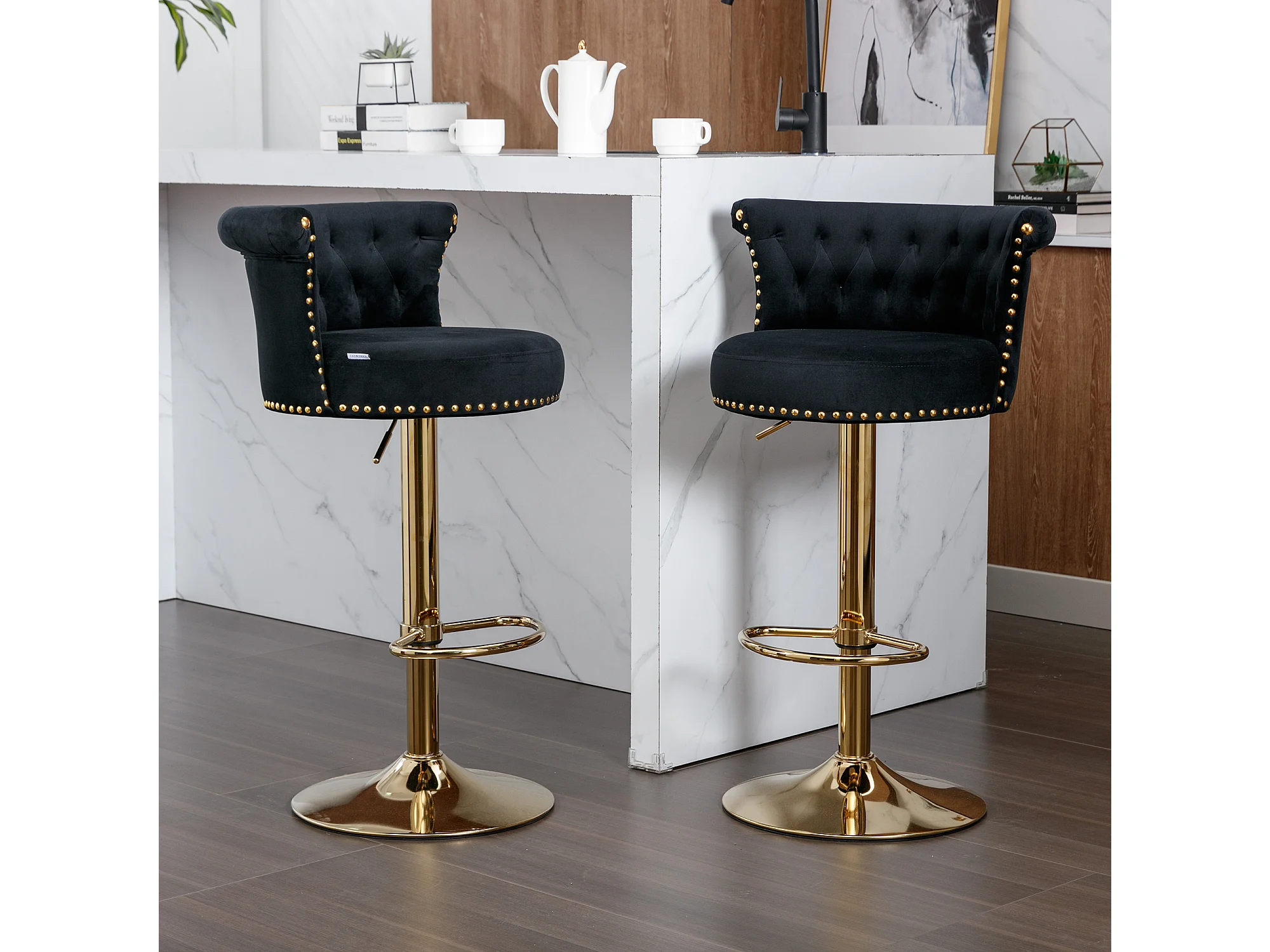 Drehbare Barhocker, verstellbare Thekenstühle, mit Fußstütze für Küche und Esszimmer, Schwarz, 2-teiliges Set