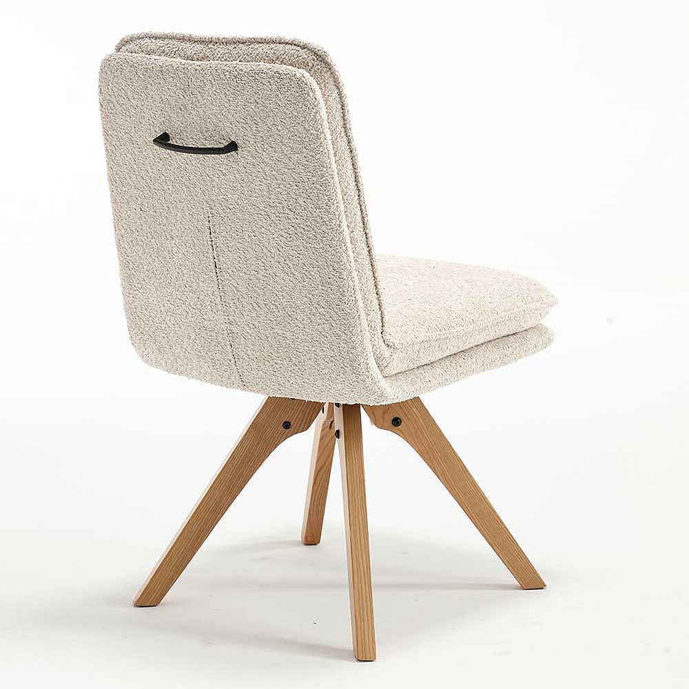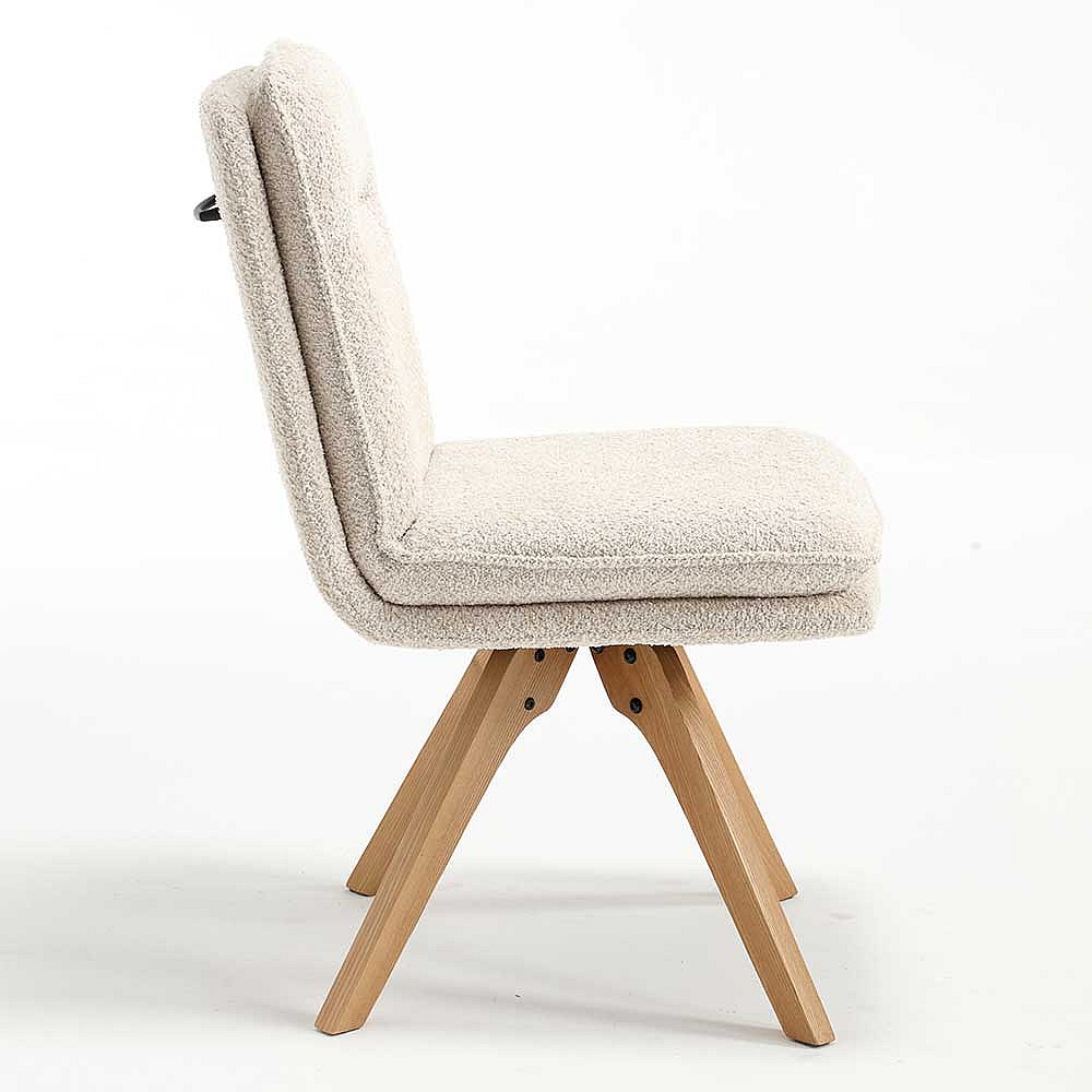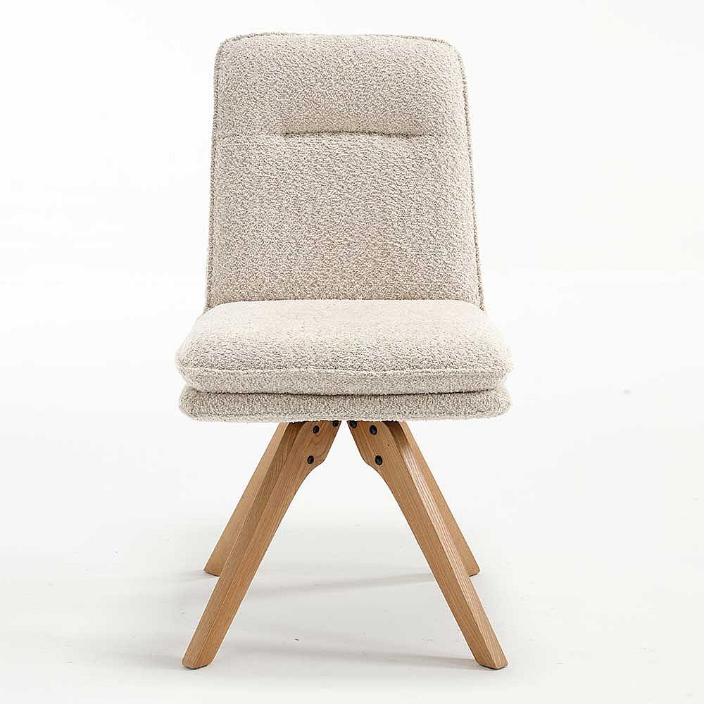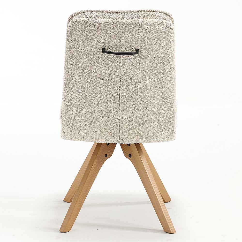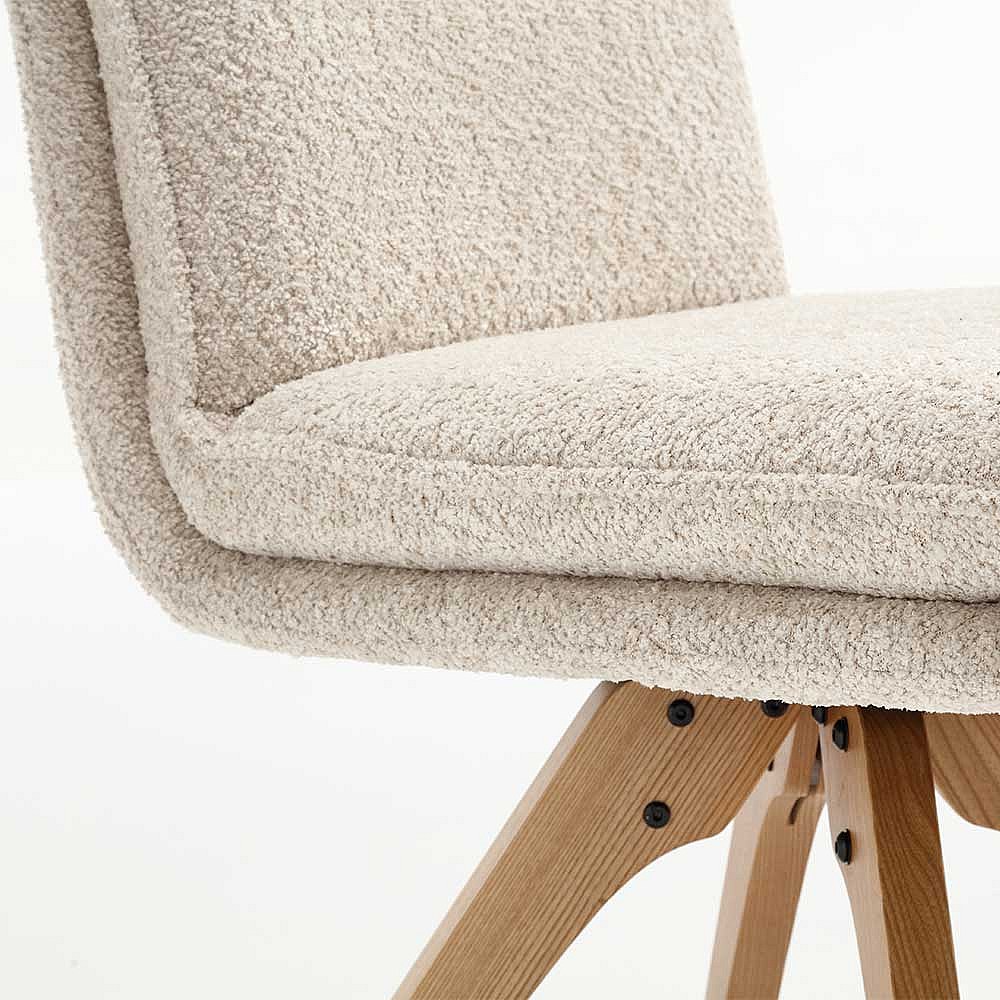 Drehbare Polsterstühle in Cremefarben Boucle Gestell aus Massivholz (2er Set)
