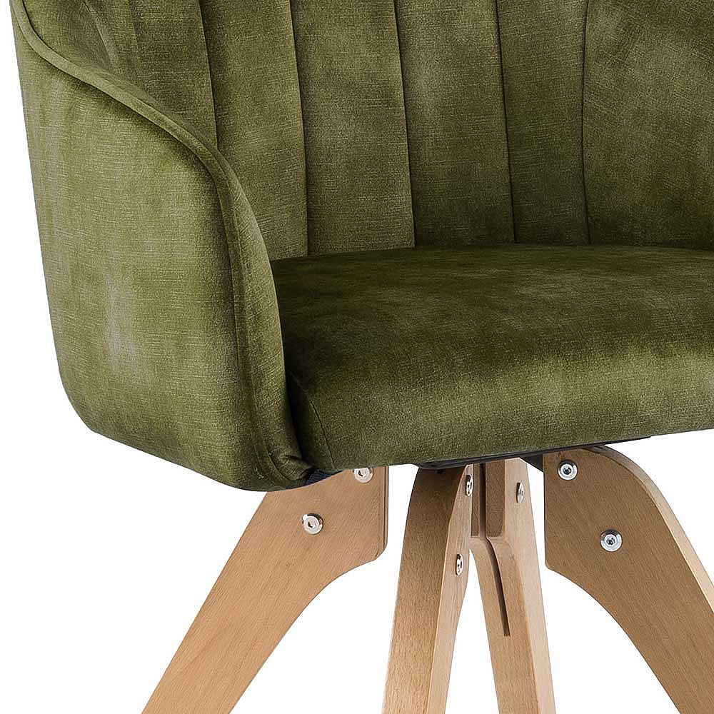 Drehbare Polsterstühle in Olivgrün Velours Armlehnen (2er Set)