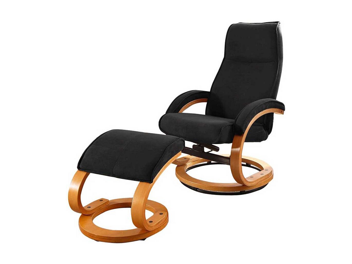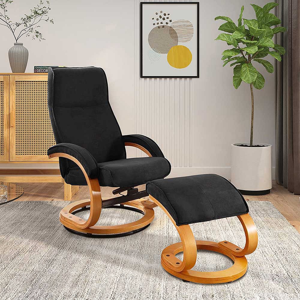 Drehbarer Design Sessel in Schwarz Microfaser Fußhocker (zweiteilig)