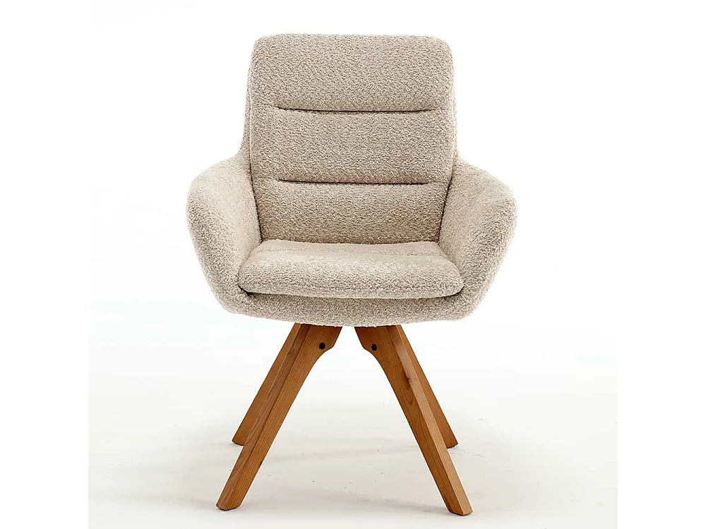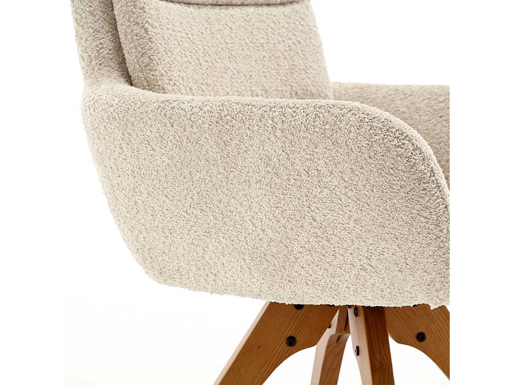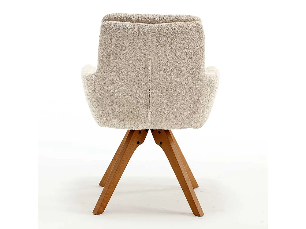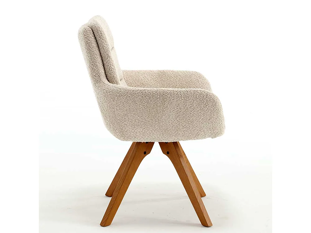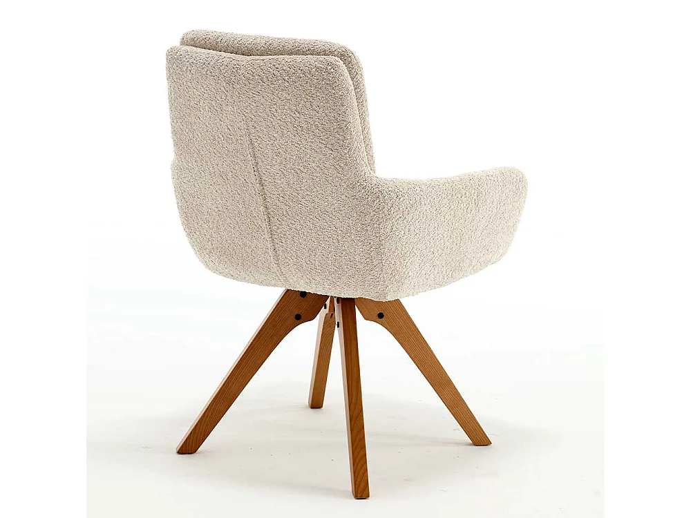 Drehbarer Esstischstuhl in Cremefarben Gestell aus Massivholz (2er Set)