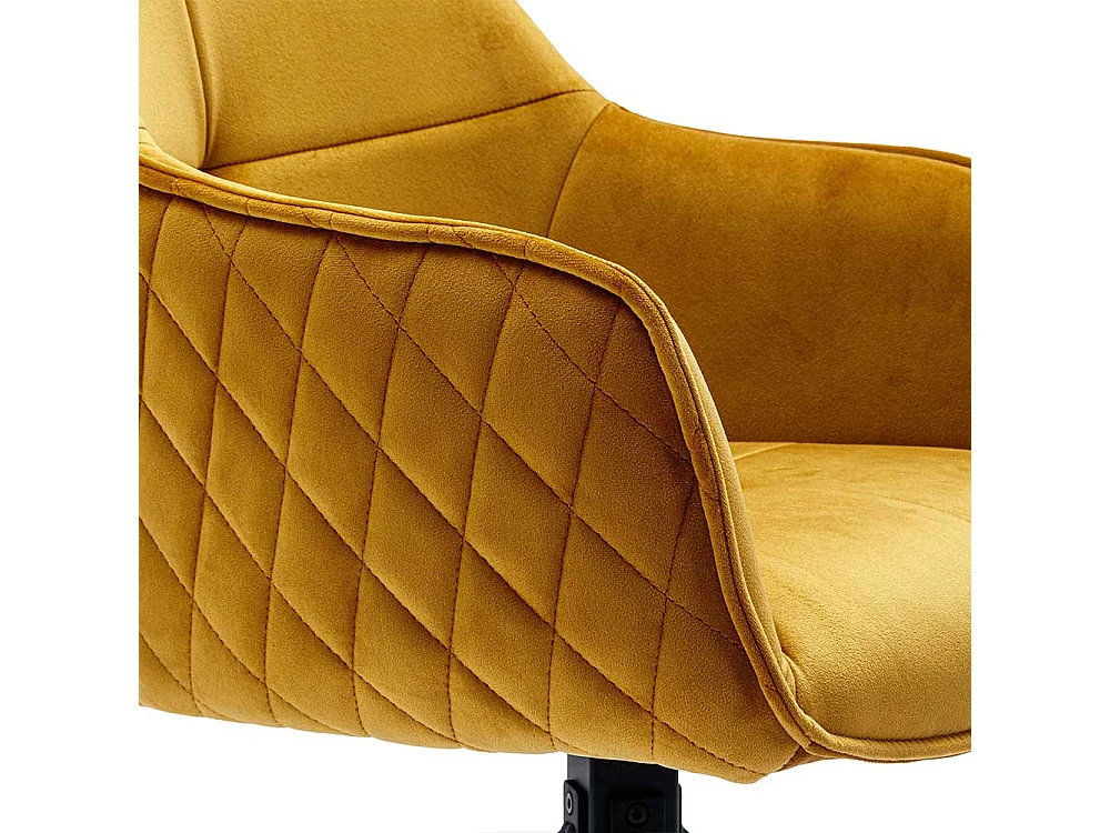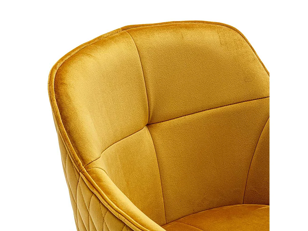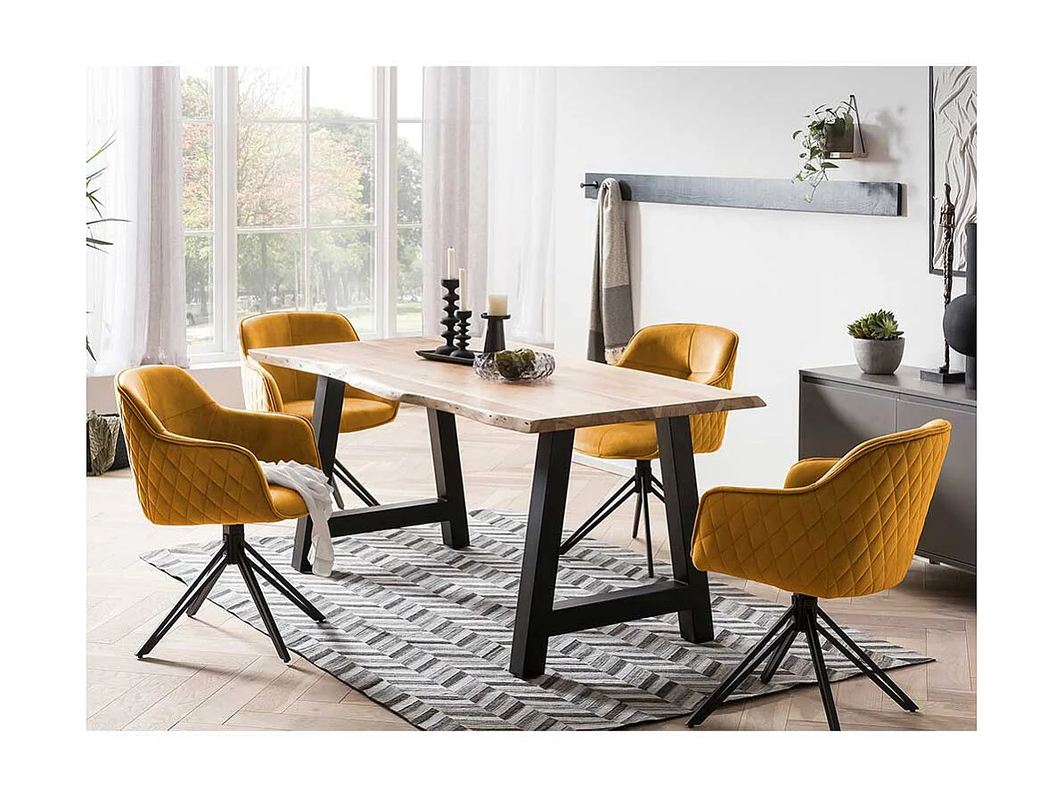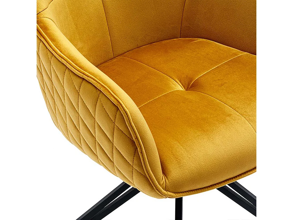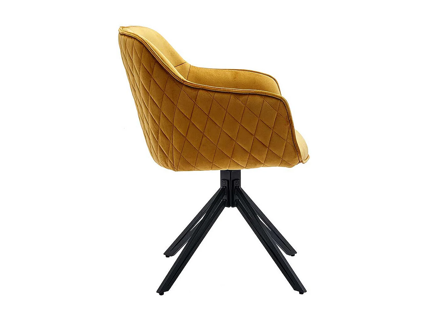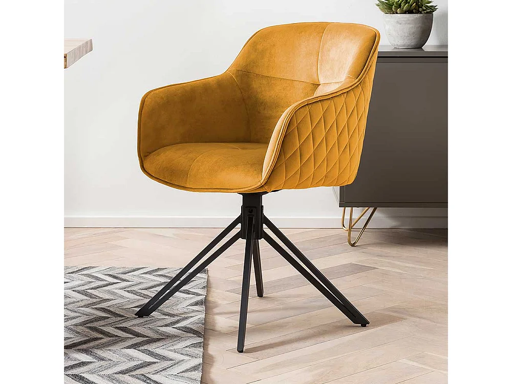 Drehbarer Esszimmerarmlehnstuhl in Gelb Samt Gestell aus Metall