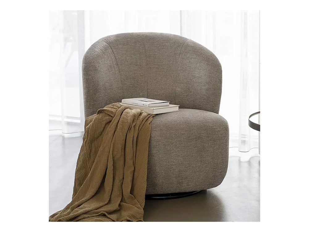 Drehsessel Beige Stoff im Skandi Design das Wohnzimmer