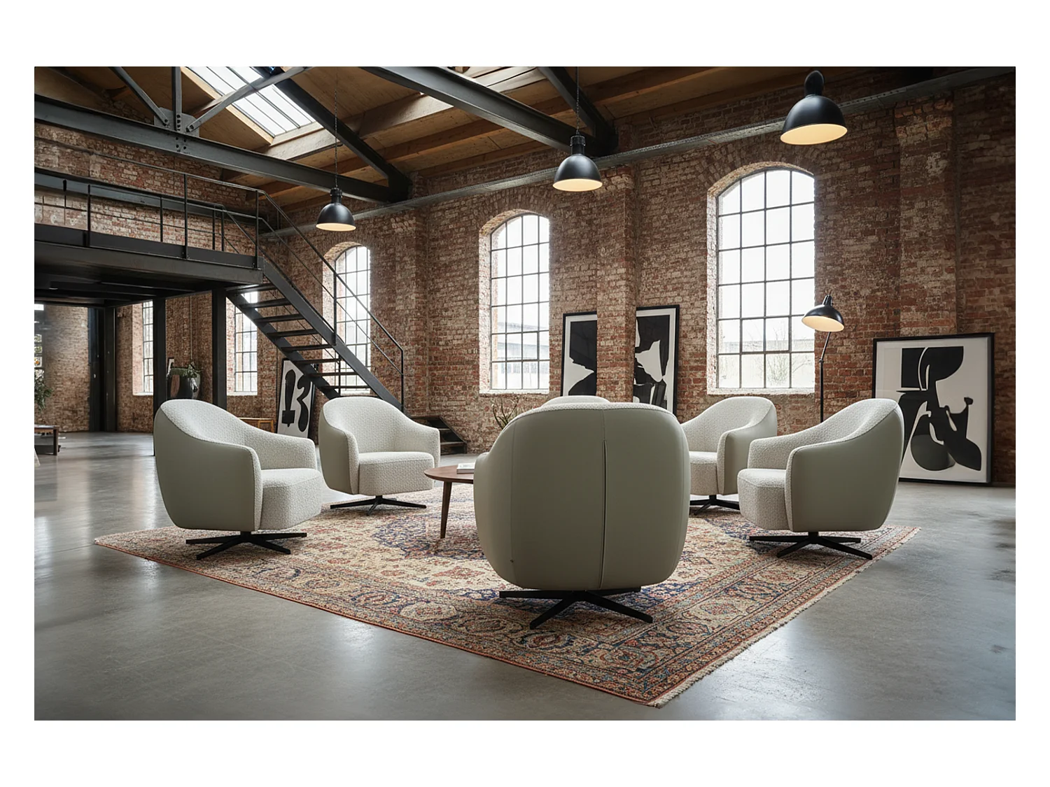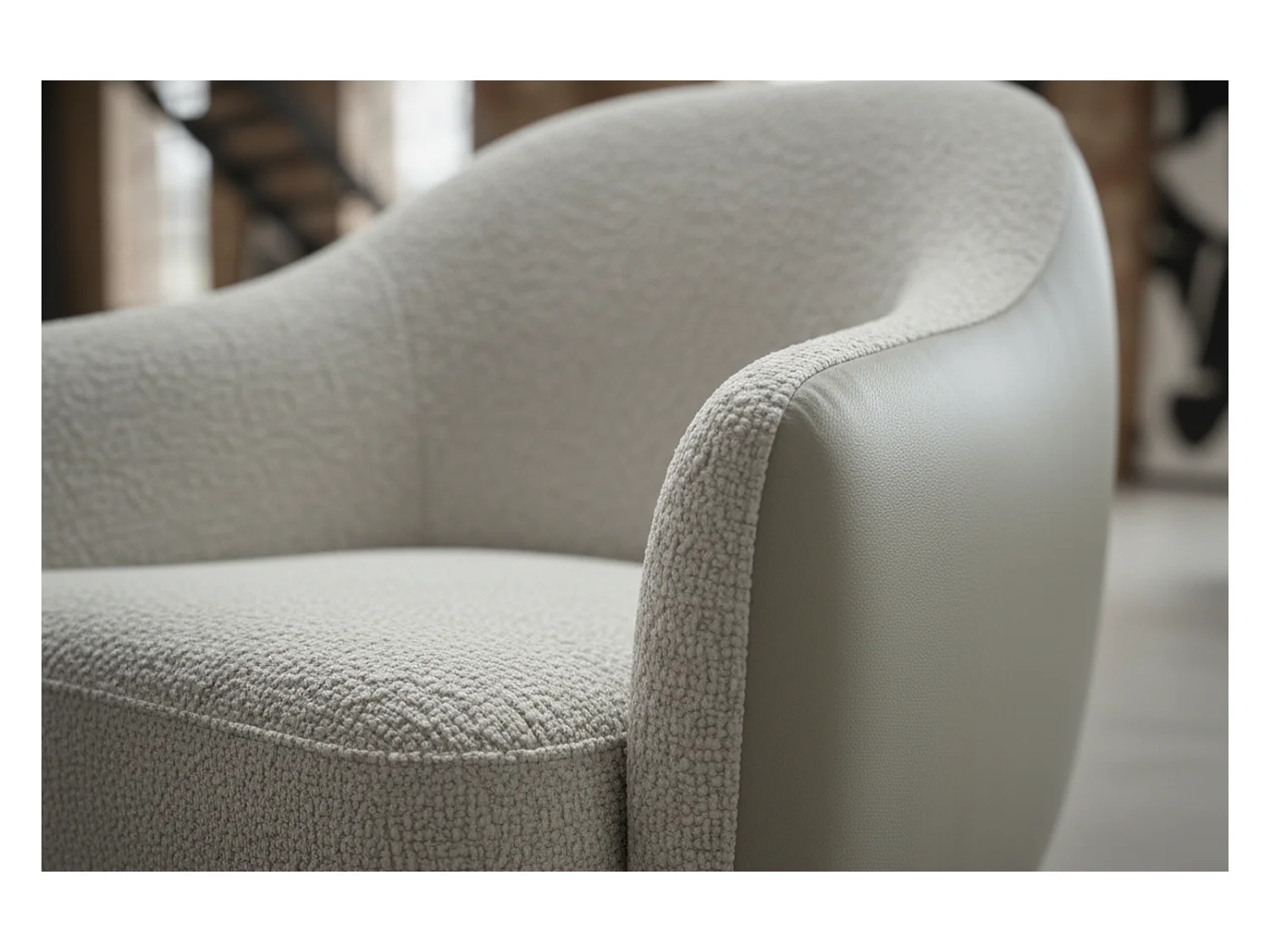 Drehsessel - Cremeweiß Kunstleder, Bouclé - BRITTO