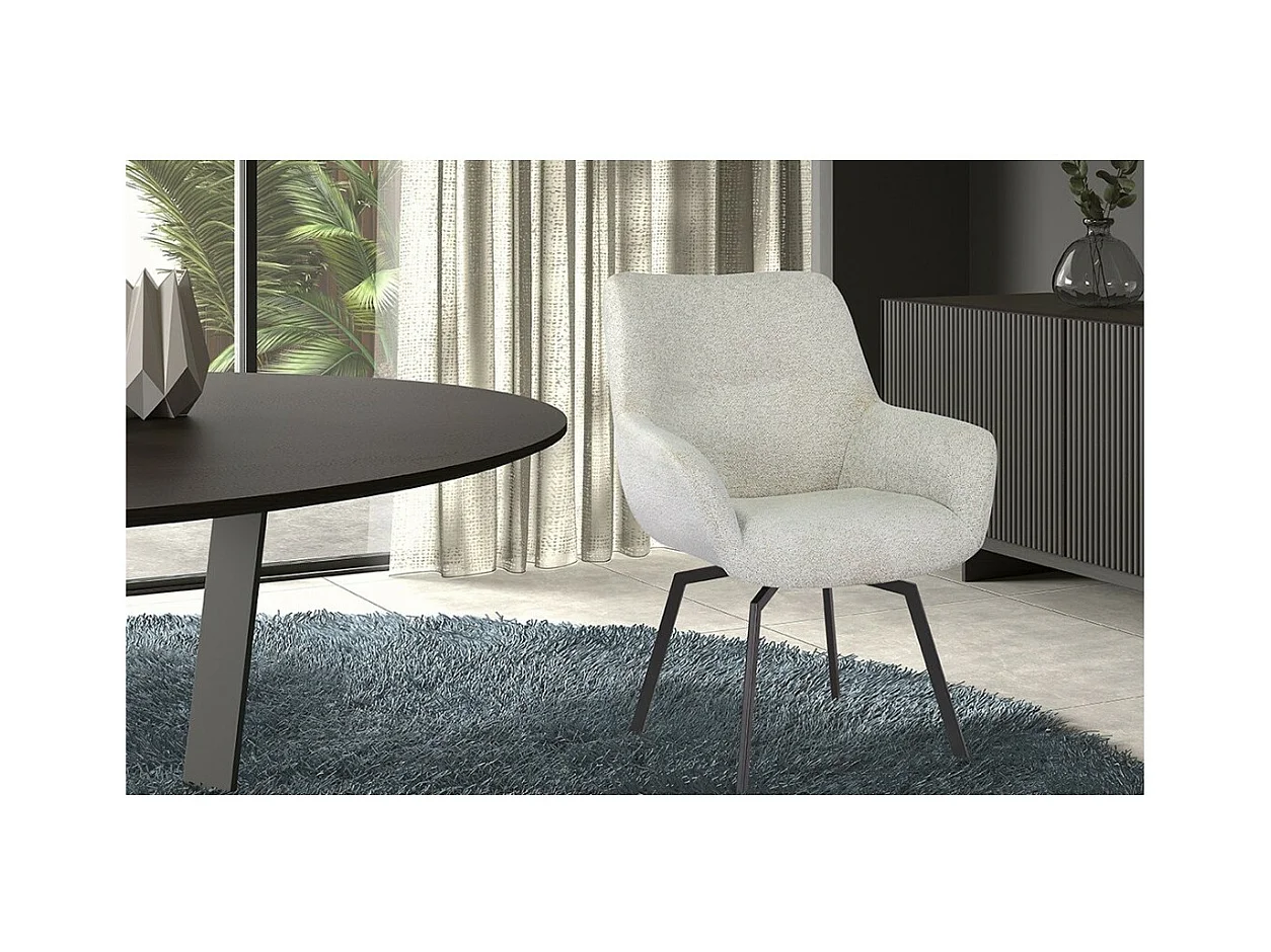 Drehstuhl MADO in Ecru-Stoff, Maße H84 x L63 x P63, ideal für Ihre Küche oder Ihr Esszimmer.