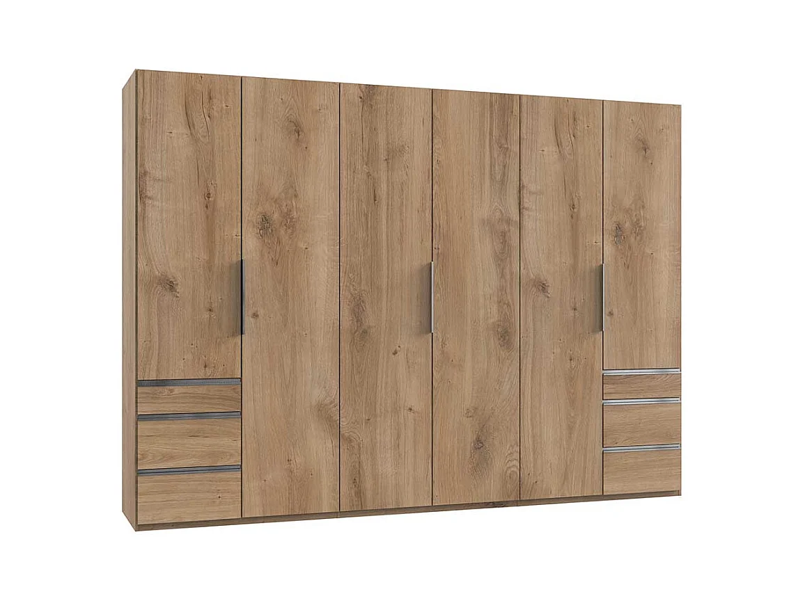 Drehtürenkleiderschrank 300 cm in Plankeneiche NB sechs Schubladen