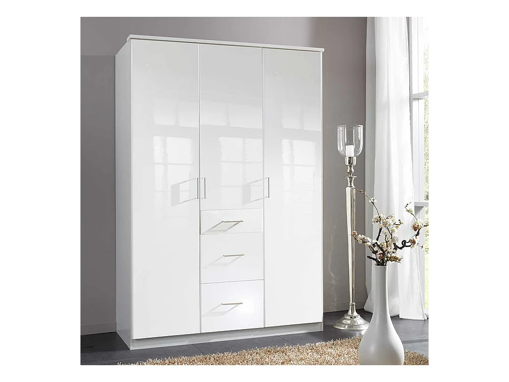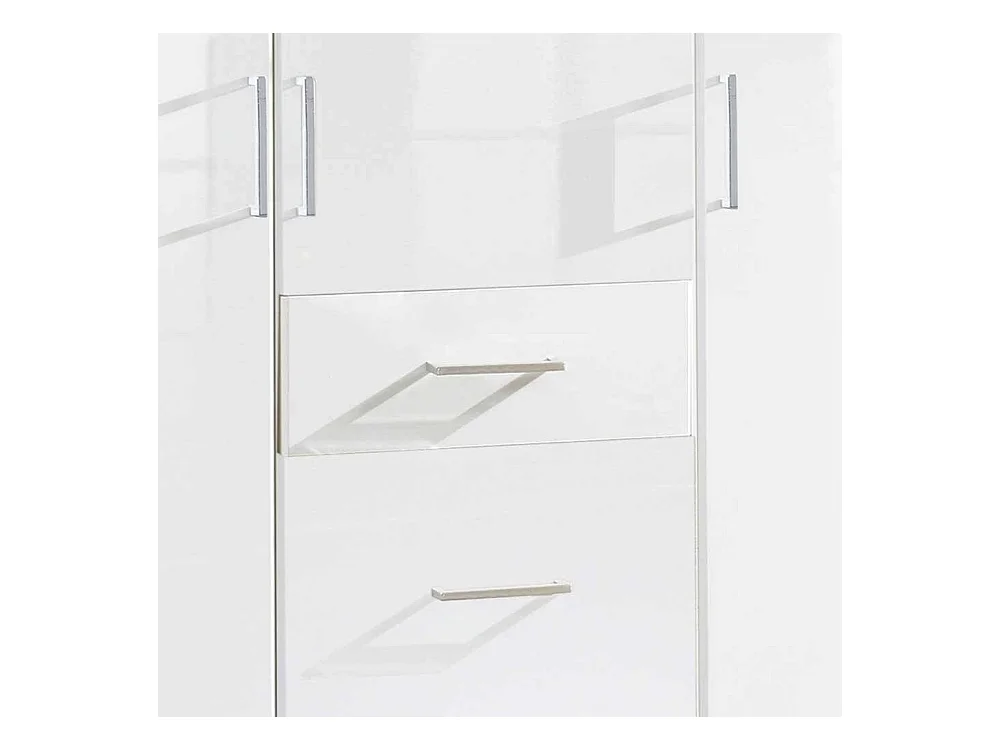 Drehtürenkleiderschrank Hochglanzfront in Weiß drei Schubladen und Türen