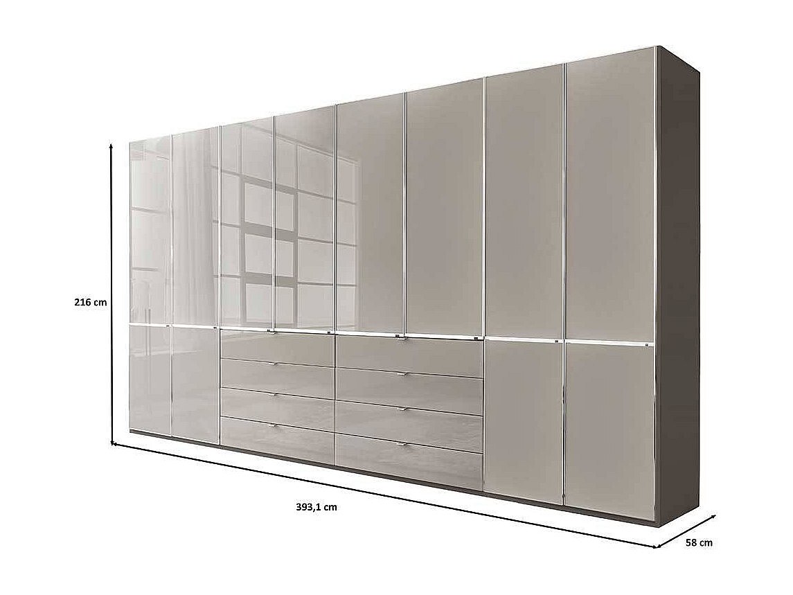 Drehtürenkleiderschrank Schlafzimmerschrank in Hellgrau 394 cm breit