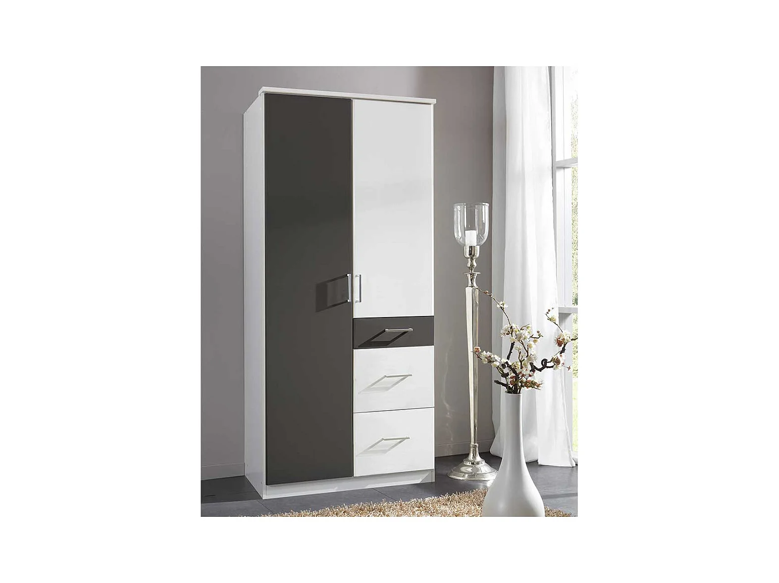 Drehtürenschrank Gästezimmer mit drei Schubladen modernem Design