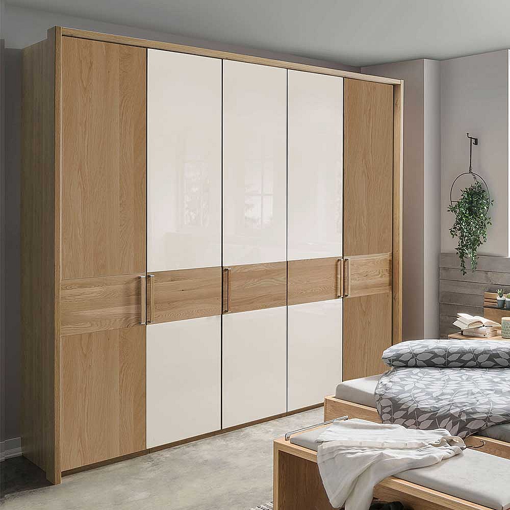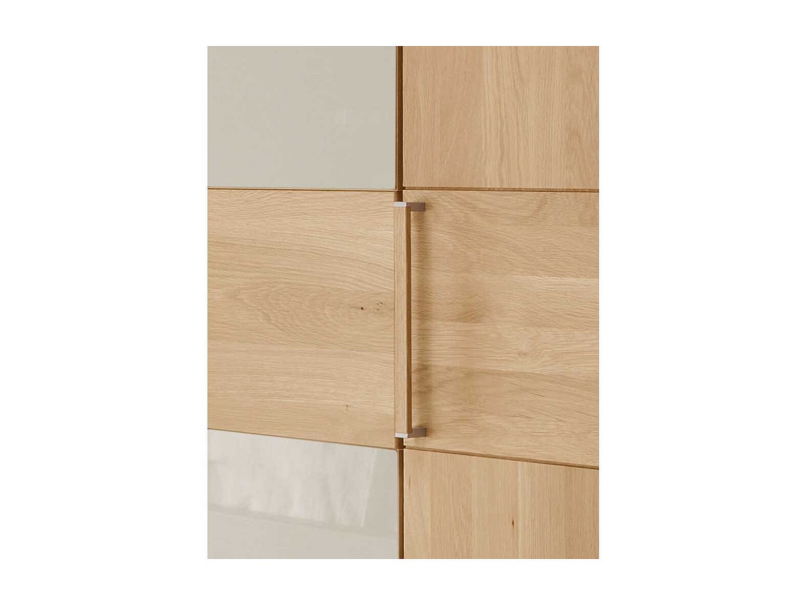 Drehtürenschrank in Beige Glas beschichtet Eiche Massivholz