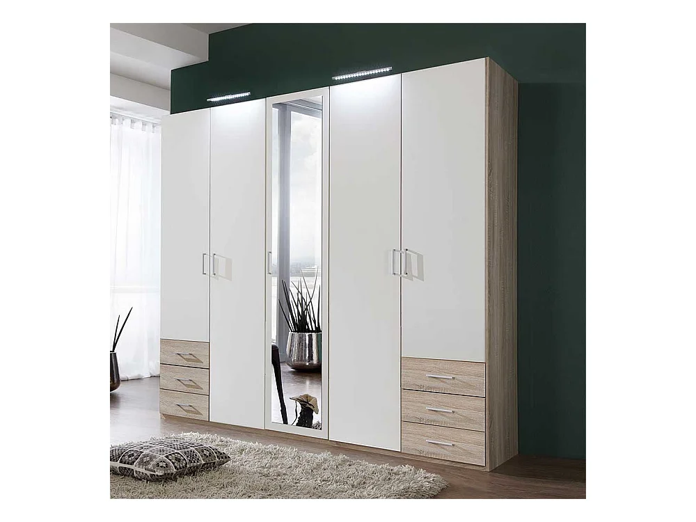 Drehtürenschrank Schlafzimmer in Weiß Eiche Sägerau Holzoptik