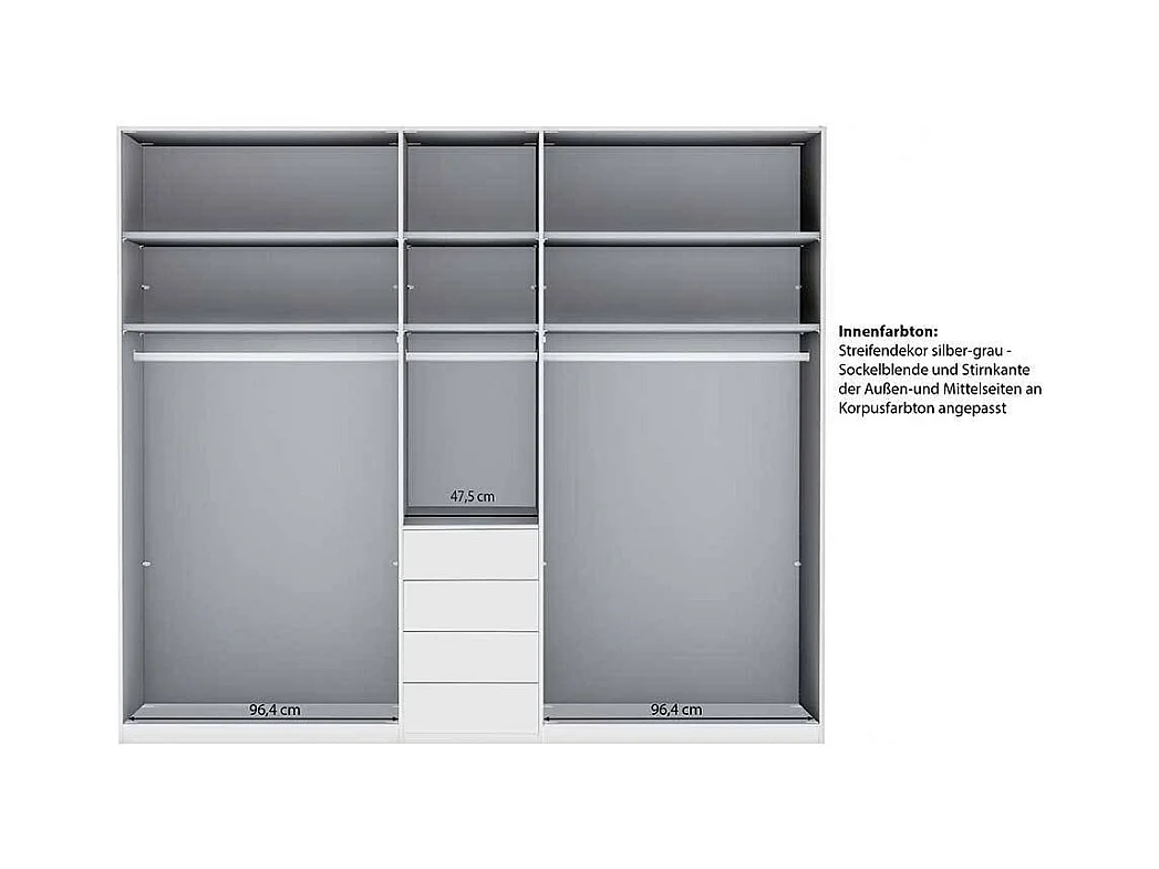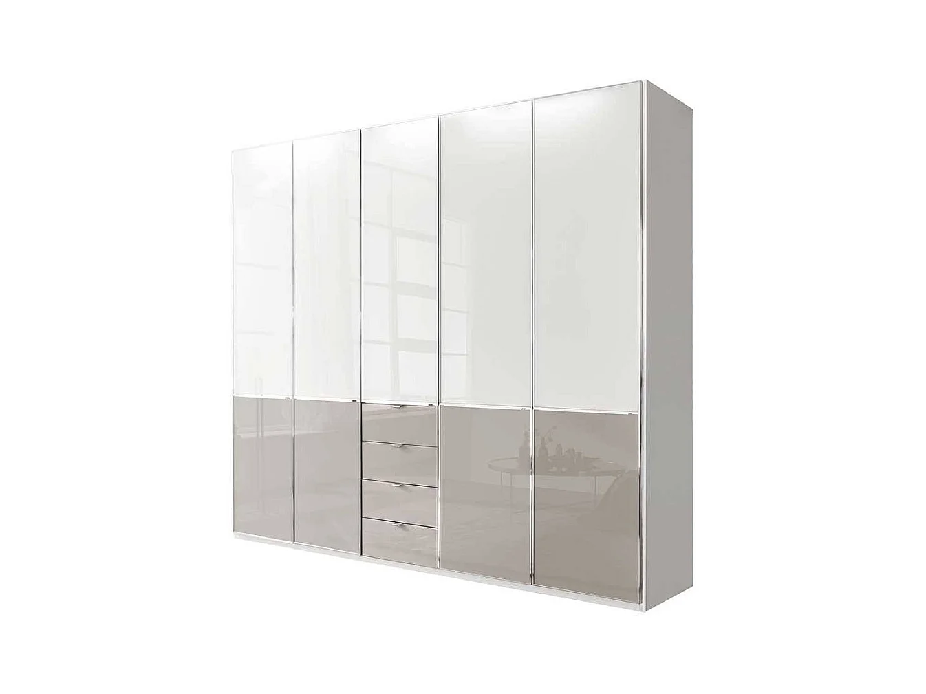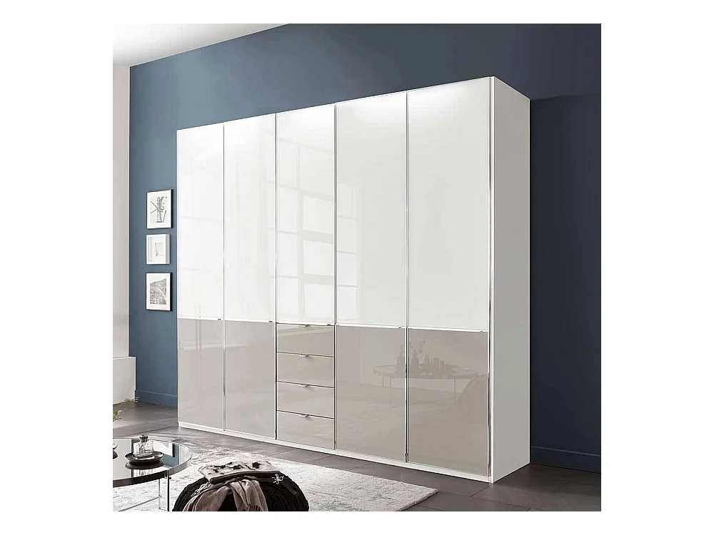 Drehtürenschrank Schlafzimmerschrank 247 cm breit Front glasbeschichtet