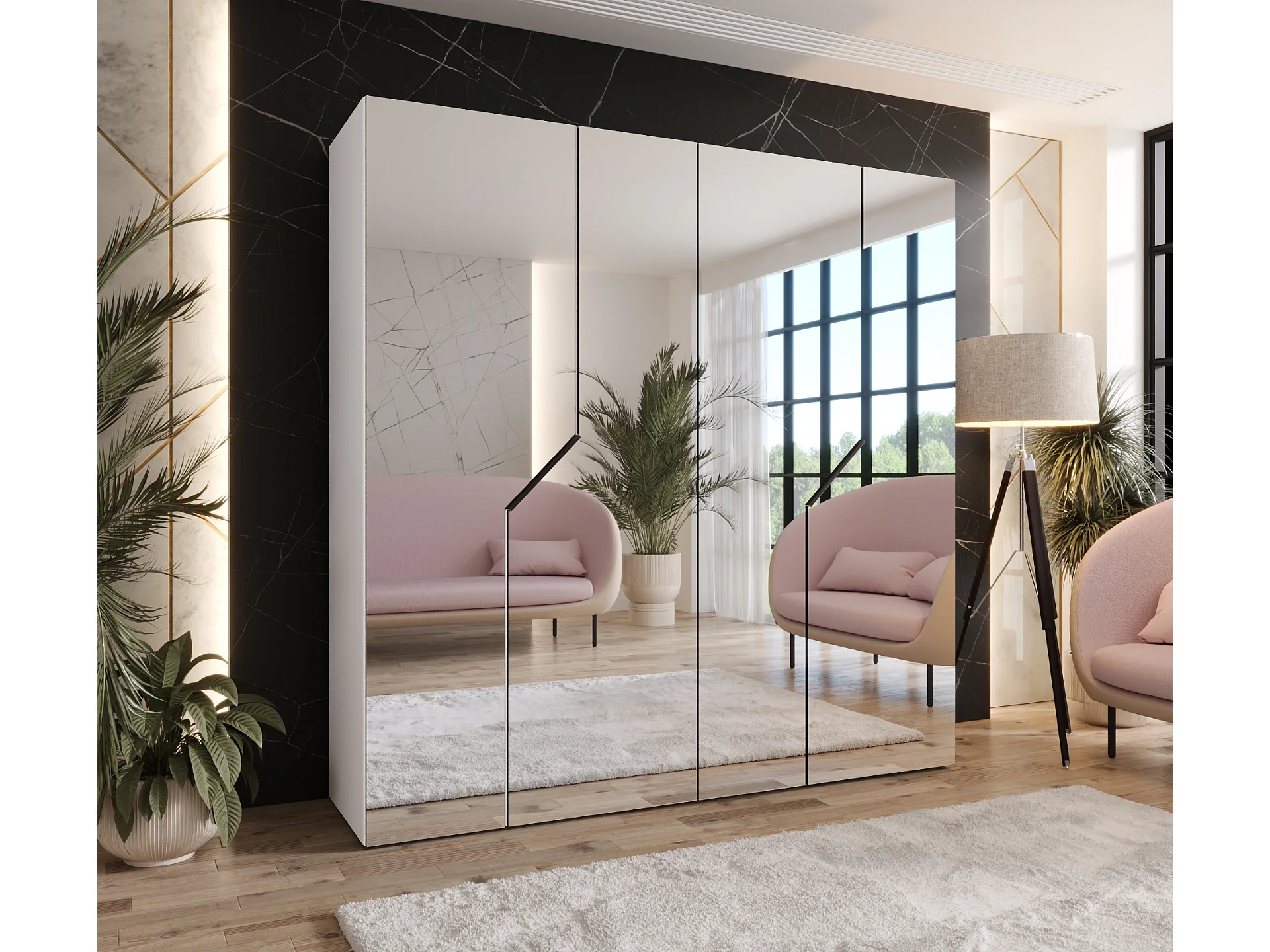 Drehtürenschrank Andrew 3 200 / 202 / 52 (Weiß + Griffe: Schwarz)