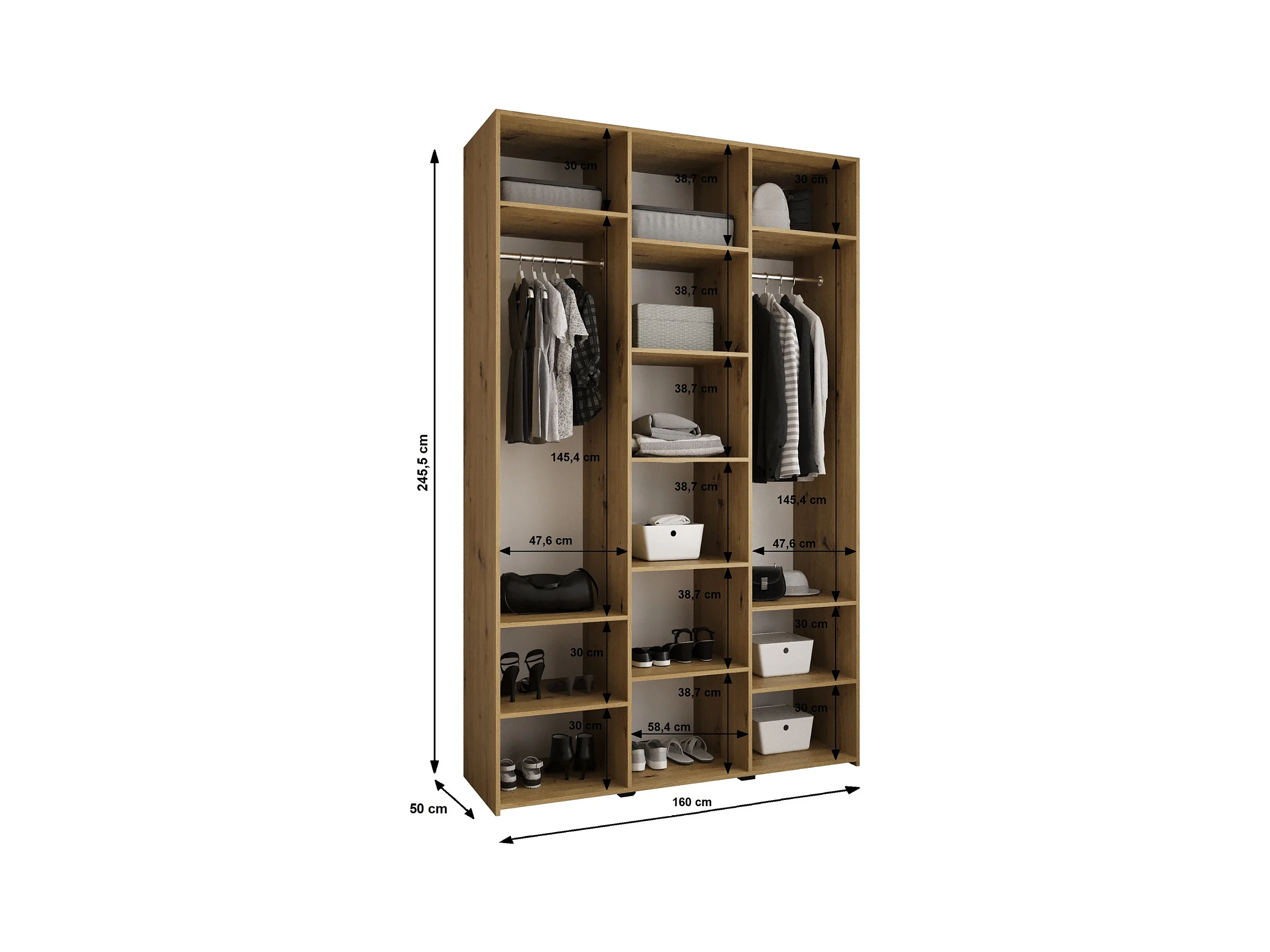 Drehtürenschrank Como 4 245,5/160/50 3-türig (Weiß/Gold)